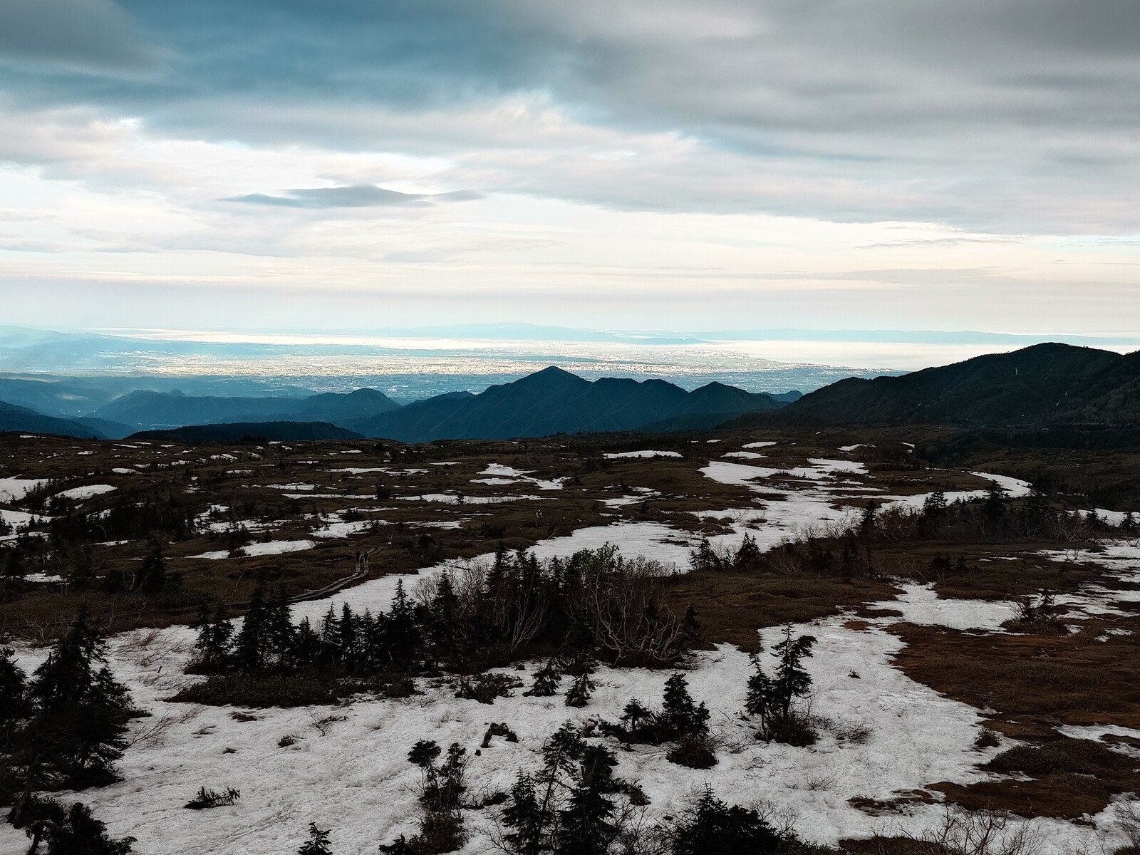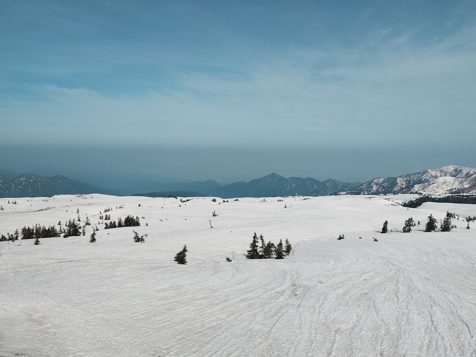 今朝の弥陀ヶ原からは、富山平野がじつにくっきりと見えたよ。いつもは白くかすむ富山湾もかなりはっきりとブルーに見えて、とても美しい風景だったんだ。写真には写しきれないのが残念。