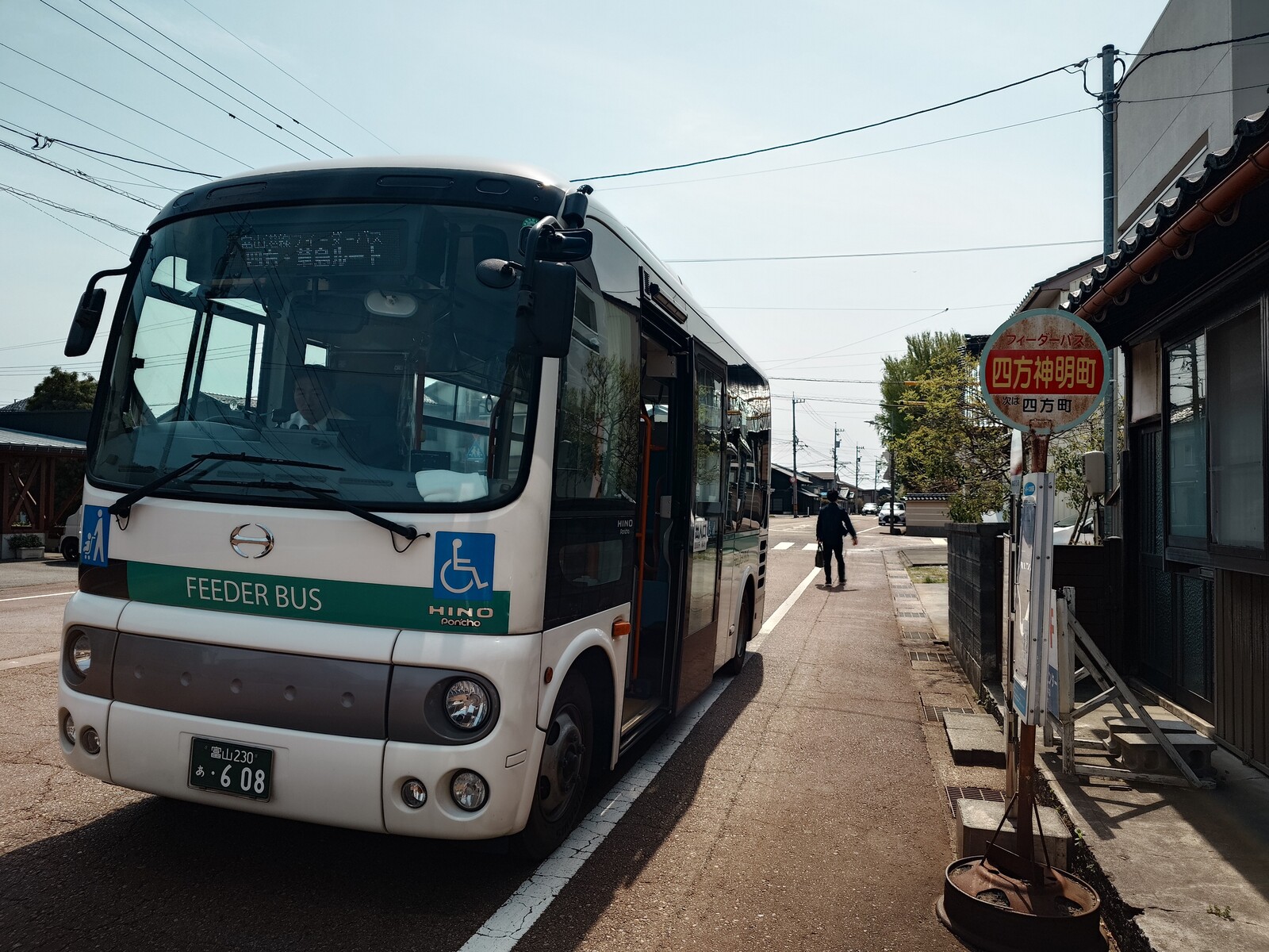 それは、四方で日曜日だけやっている素敵なカレー屋さん「さんかく」を訪れた日の話。昼間っから瓶入りの『キリン晴れ風』をいただいてすっかりご機嫌になったボクは、フィーダーバスに乗って再び富山港線に戻るべく、バス停へと向かったんだ。