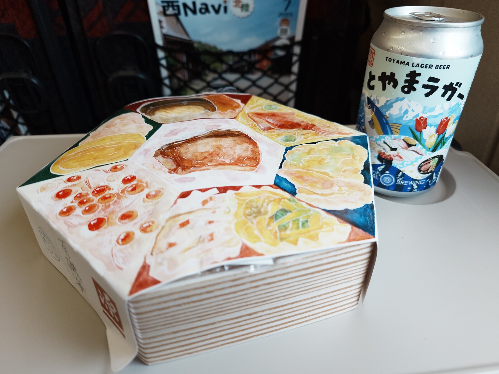 富山駅で駅弁を買うとなれば、「ますのすしの源」。ビールのおつまみになればいいなと思って購入したのが『有磯海』だよ。「とやまルシェ」にある「ホクリカー」で『とやまラガー』も入手。