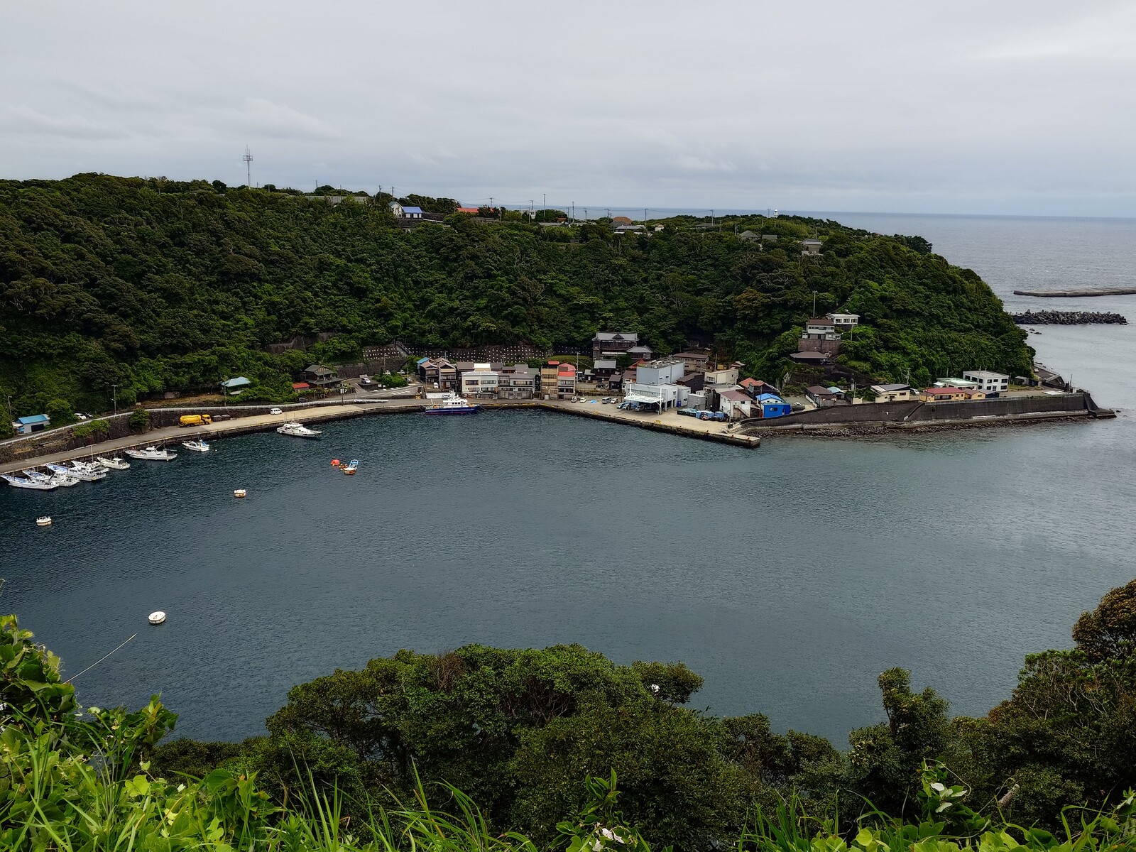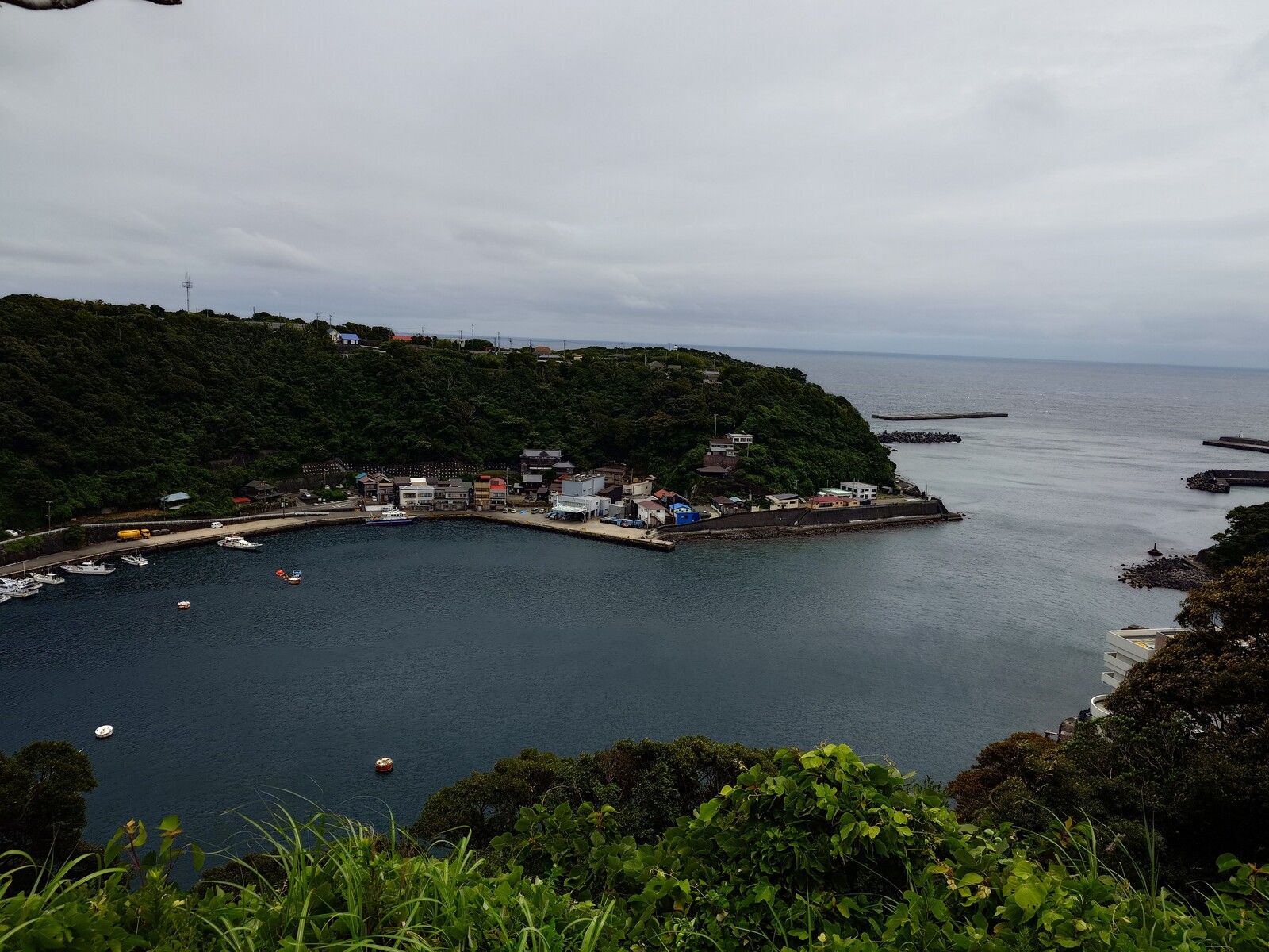 この日は、そんな波浮港を見下ろす展望台、「波浮港見晴台」にやってきたよ。周囲を崖に囲まれた天然の良港、波浮港は、独特の雰囲気をもった美しい港なんだ。小型漁船での漁業が廃れた令和の今、この漁港は、地元の漁師さんが羽を休める、静かな漁港に様変わりしているんだ。