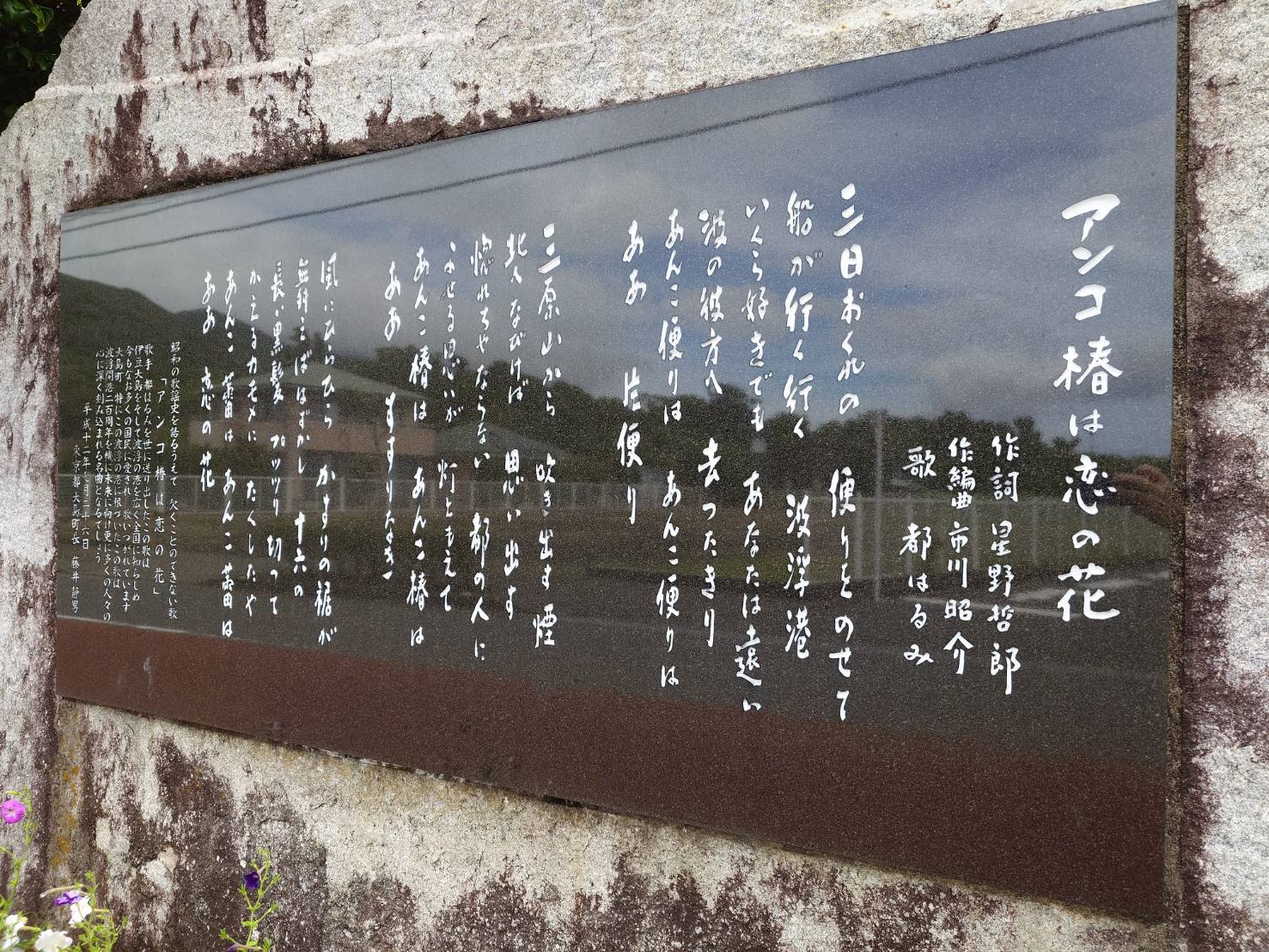 そして、「アンコ椿は恋の花」の歌碑もあるのだ。作詞したのは、これまた昭和の名作詞家、星野哲郎。水前寺清子の「三百六十五歩のマーチ」とか北島三郎の「風雪ながれ旅」とかを書いた人だけど、この歌、わかる?