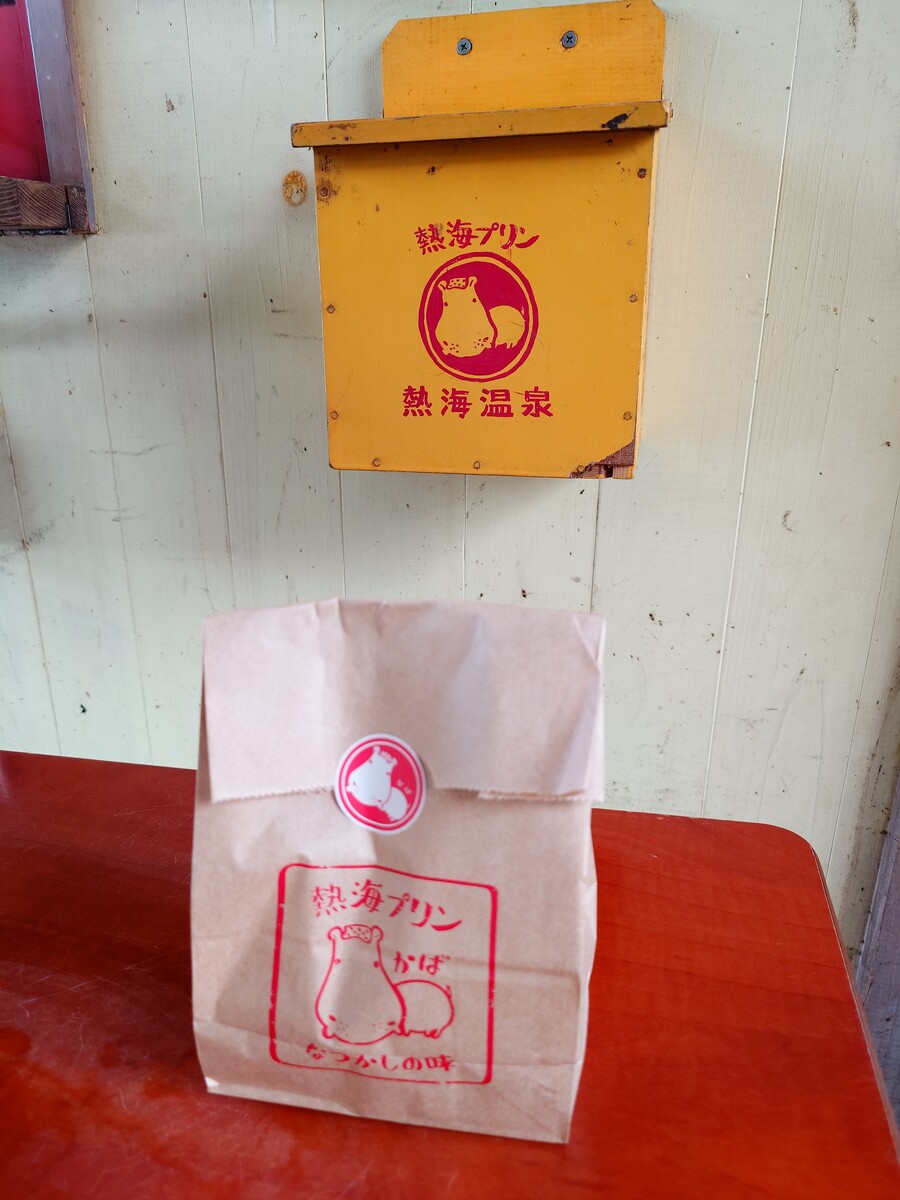購入したのは、ノーマルな『熱海プリン』と『風呂まーじゅプリンだいだい』。ノーマルはいたってノーマル。少しかためだけど、昔ながらのプリンほどはかたくない、というところがいい感じだったな。ノーマルは、付いてるカラメルソースが絶品だったよ。焦げた甘さが、昔気質なプリンの味を一段引き揚げてくれるんだよね。