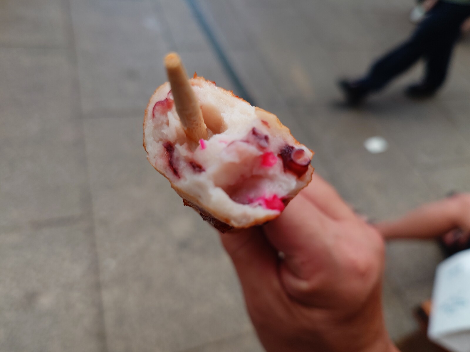 中には、刻んだタコ足がぎっしり。人気がある分商品の回転が速く、揚げたてなので実にうまいのだ。