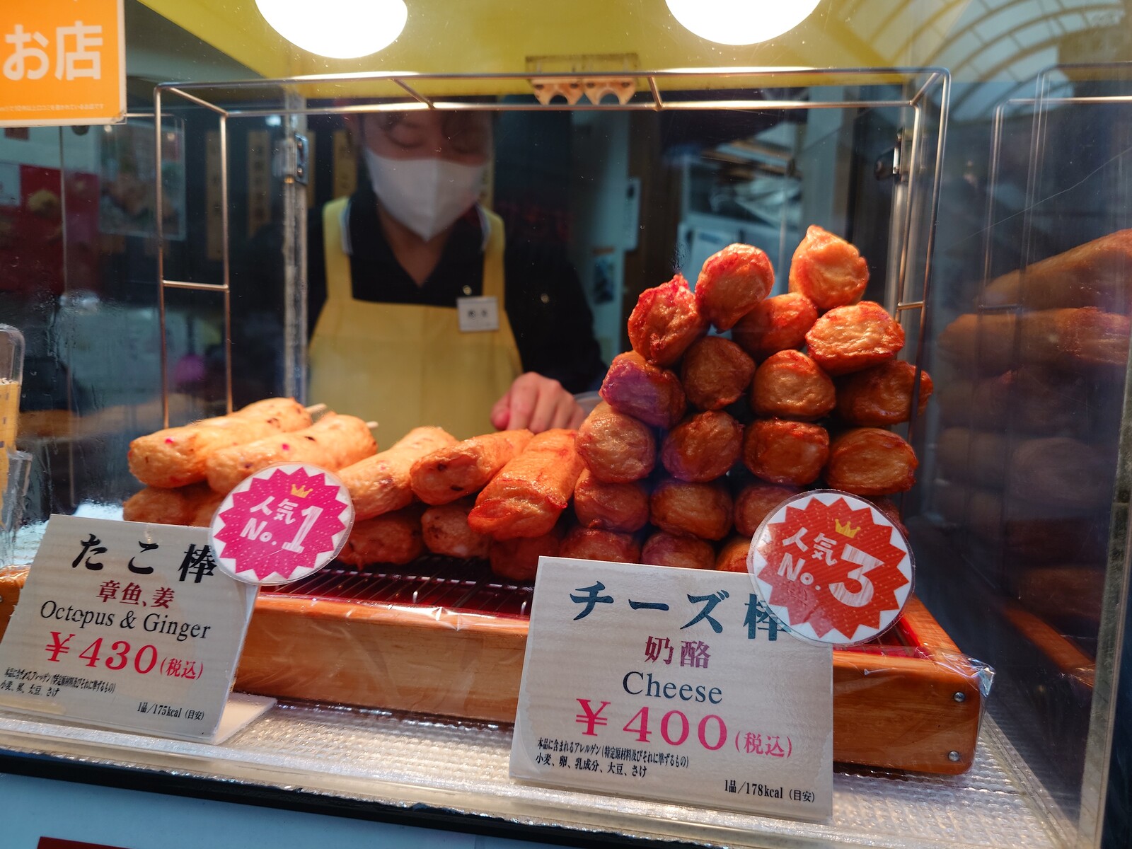 ショーケースに並んだ磯揚げはどれも魅力的で、全部食べたいと思うほど。とはいえ、胃袋は一つだから、ここは一品選ぶしかあるまい。ボクが選んだのは『たこ棒』。タコを入れたすり身を棒に巻いてあげた一品だよ。