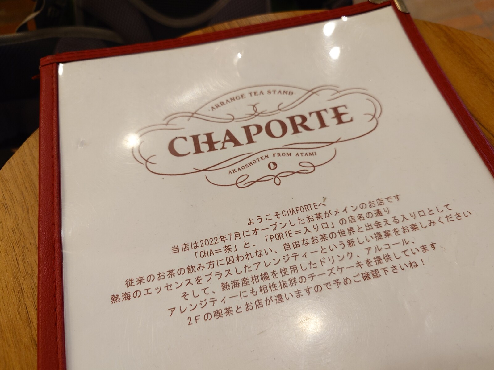 この日は、熱海駅前から街中をさんざん歩き回って、喉が渇いてきたんだよね。ここらで一休みしたいと思ったところで、たどり着いたのが、仲見世通り商店街の入り口にあるカフェ「CHAPORTE(チャポルテ)」。