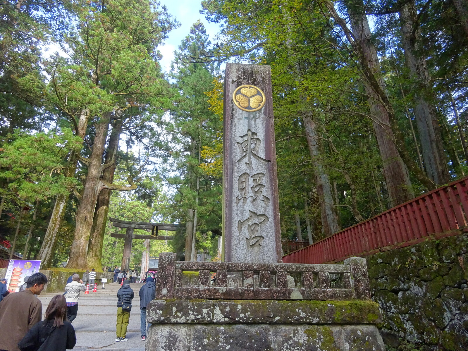 「石鳥居」は、江戸時代に造られた石の鳥居としては日本最大なんだって。「東照大権現」の額は、後水尾(ごみずのお)天皇の筆によるとか。畳一畳のサイズがあるっていうからびっくり〜。「東照大権現」っていう神号を贈ったのも後水尾天皇なんだって。そして、この「石鳥居」、重要文化財なのだ。