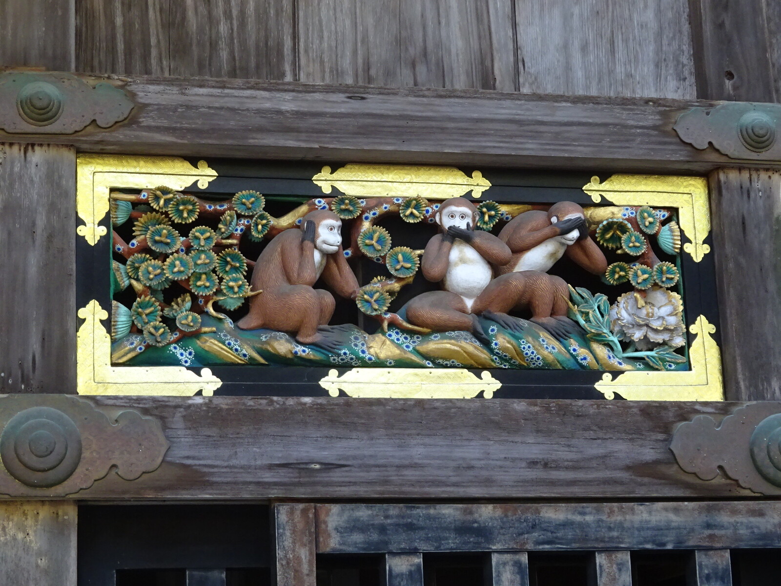 「三猿」は、猿の一生を彫った8枚の彫刻の1枚。確かにこの1枚は教訓的だし、目を引く場所にあるし、作品としても素晴らしいと思ったよ。