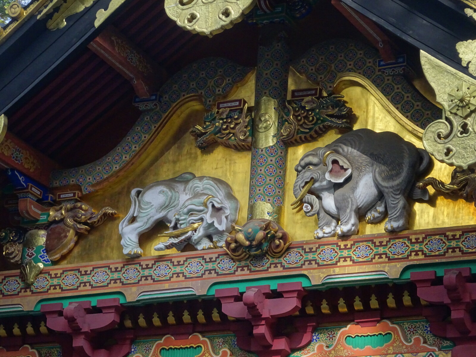 「三神庫」も重要文化財。「想像の象」が彫られてるけど、実際の象とは、ちょっと違った見た目。大きな耳があり、長い鼻と牙があるところは、実際の象と同じだけど、想像で彫っちゃうと当たらずとも遠からずになるのが面白い。