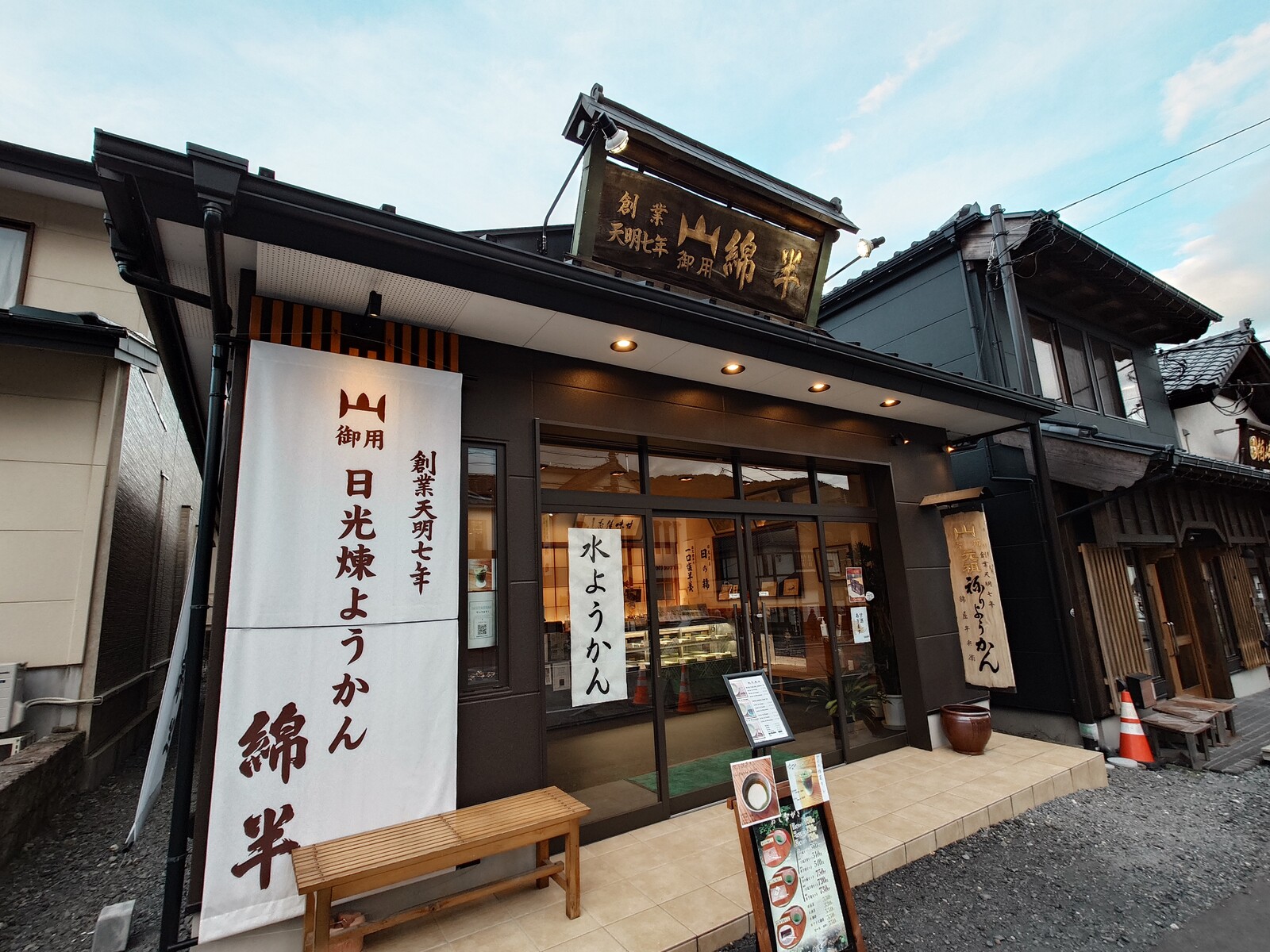 3軒目に出会ったのが「日光羊羹 綿半」。天明7(1787)年創業というから、実に古くから営業しているお店なんだ。この店は支店で、本店は西参道といって東照宮を西に下ったすぐのところにあるから、江戸時代、大名衆が泊まる街の中心はそちらにあったということだね。