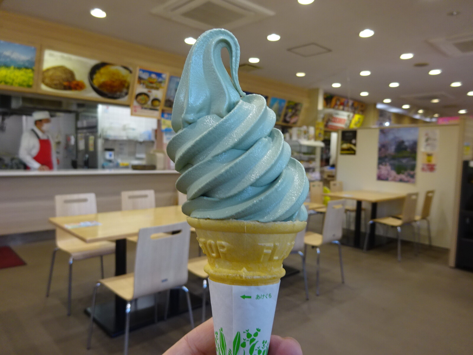 一口目は、ふつうにソフトクリームっぽいんだけど、残り香によもぎの香りを感じたんだ。これはこれで、はまってしまうかも。