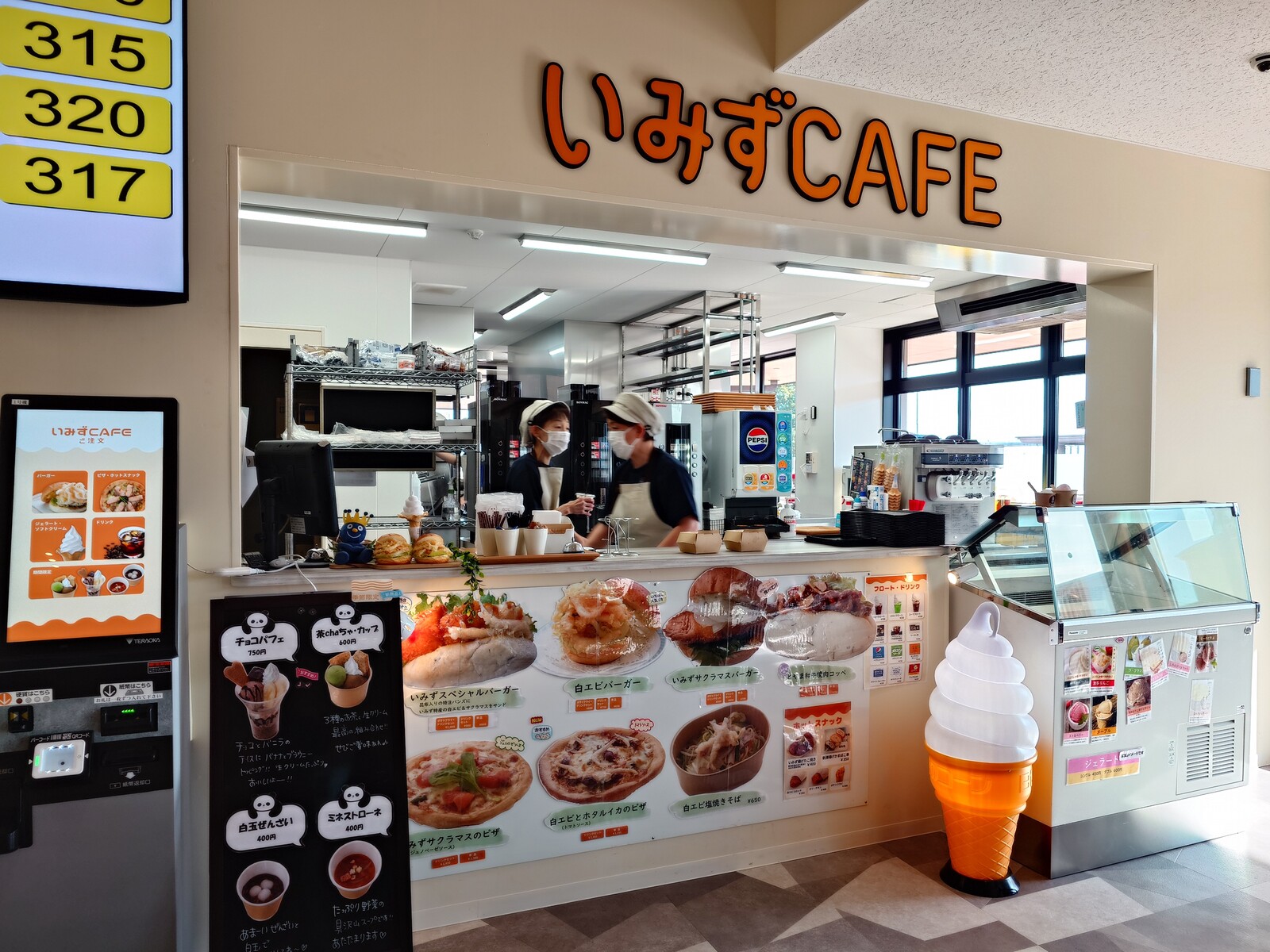まずは、地元「いみずCAFE」の『コーヒーソフトリーム』ね。濃厚なミルク味にかぶさる豊かなコーヒーの香りが、なかなかの大人味なんだ。