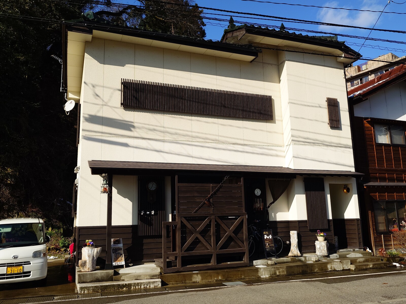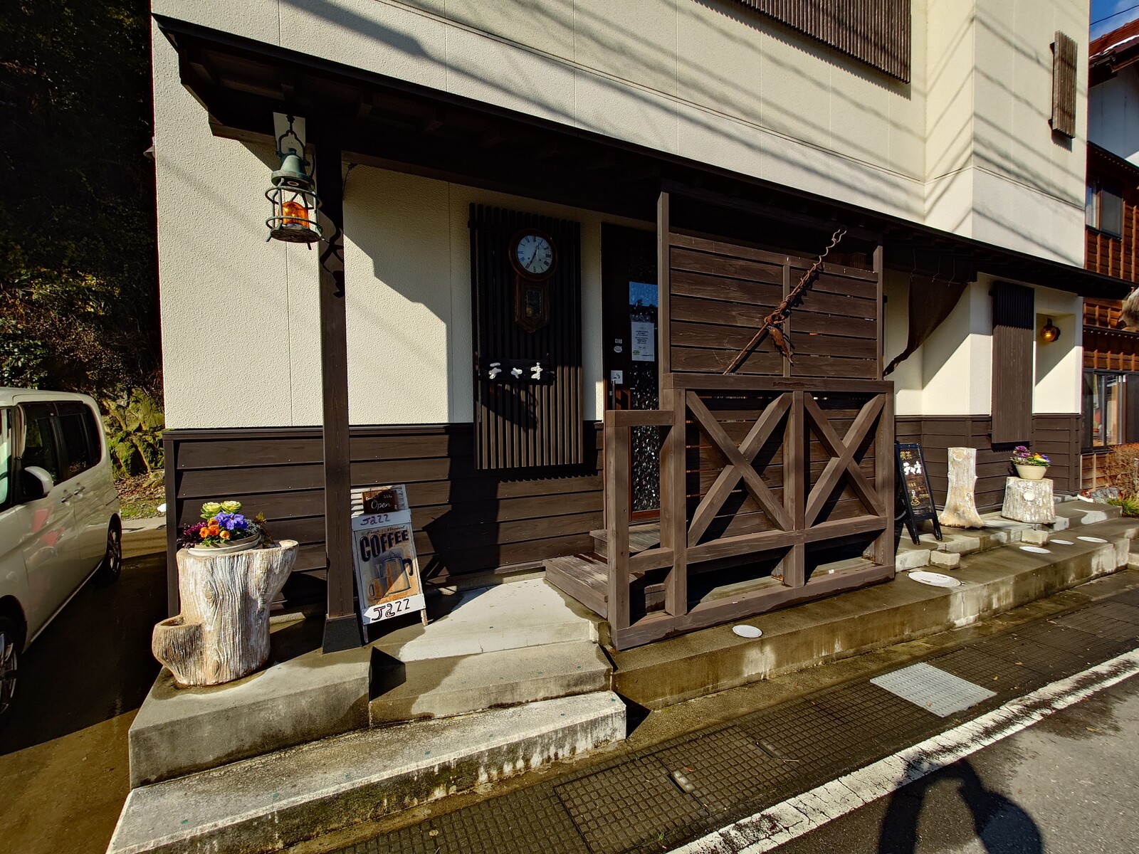 旅館法師の前の道と県道小松山中線との交差点近くにあるのが「喫茶チャオ 」。
