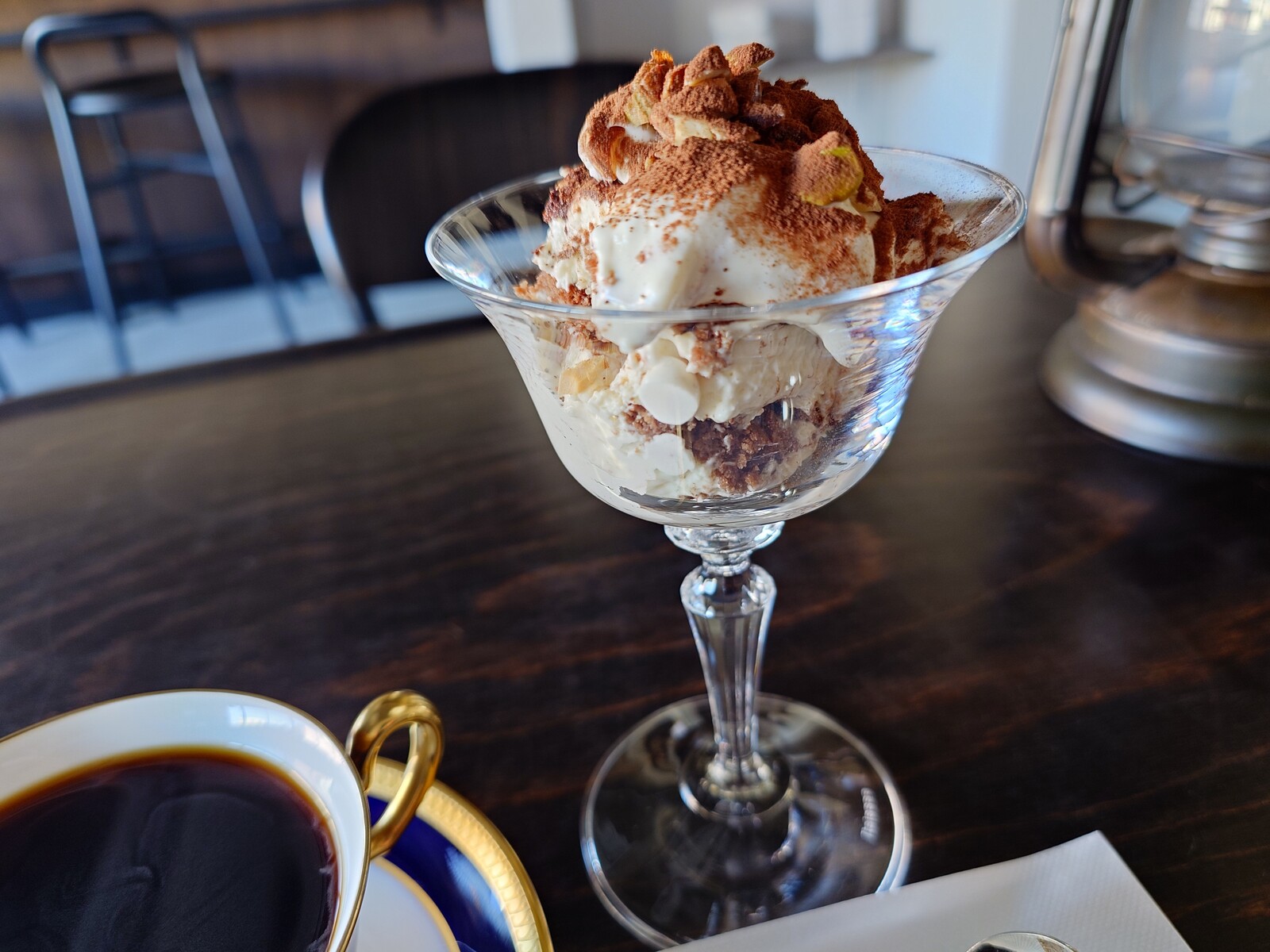珈琲六杏のクールなたたずまいで味わうティラミスとブレンドコーヒー
