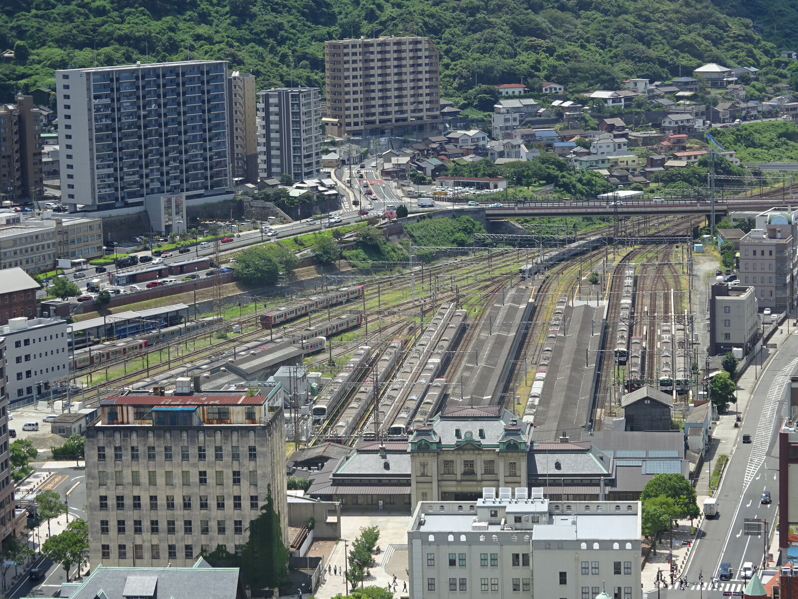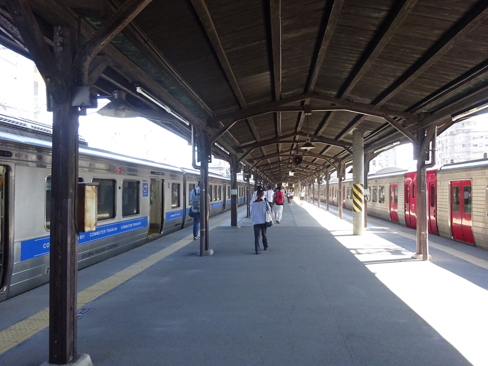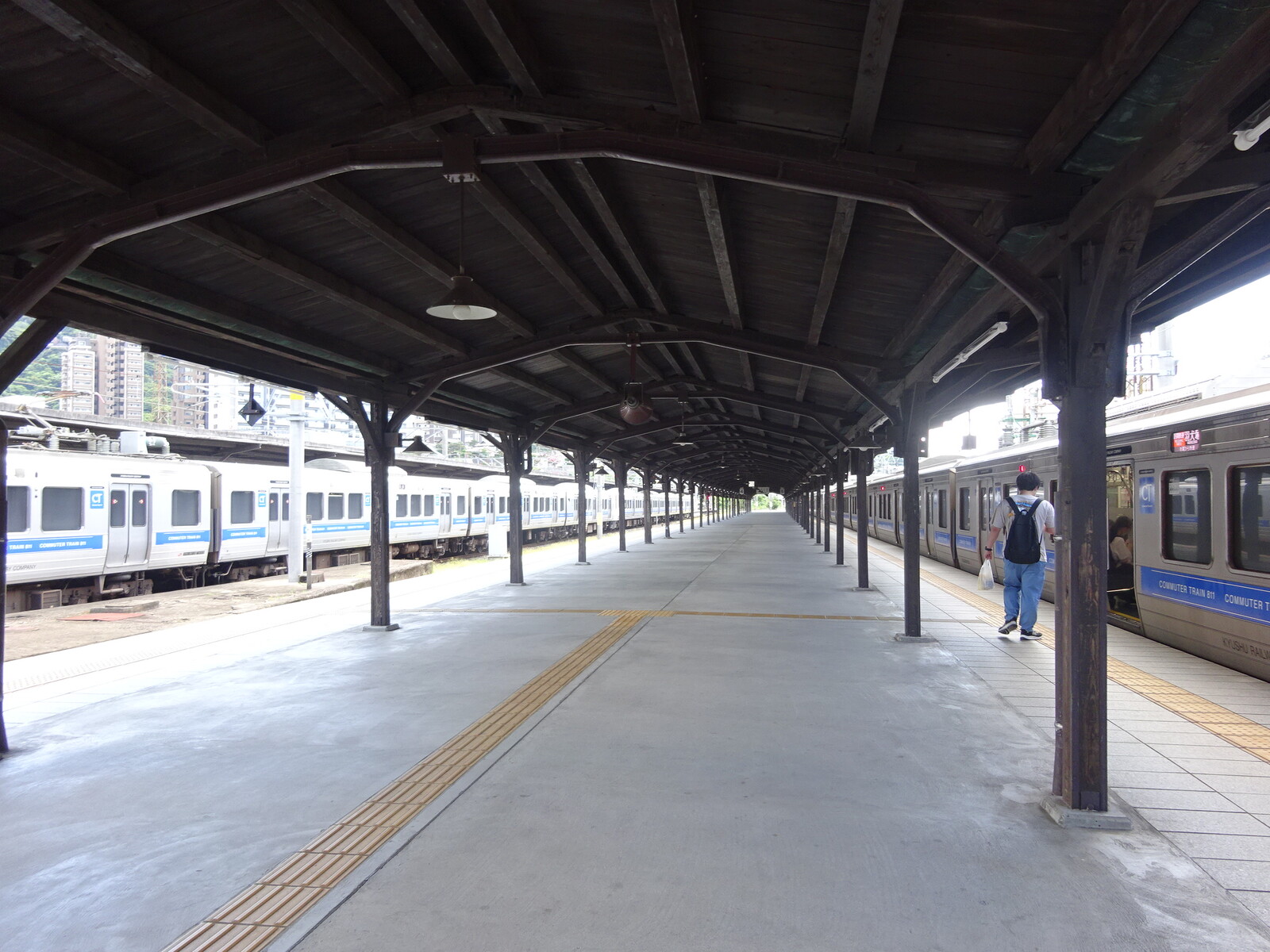 長崎駅前には、長い停留所があって、電車が溜まれるようになっていたよ。