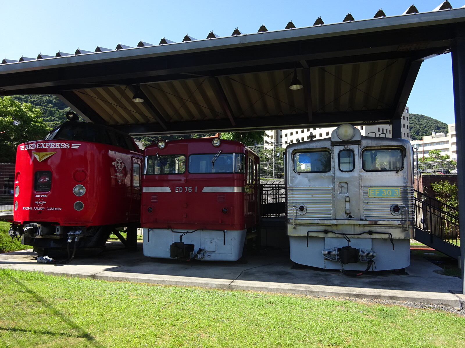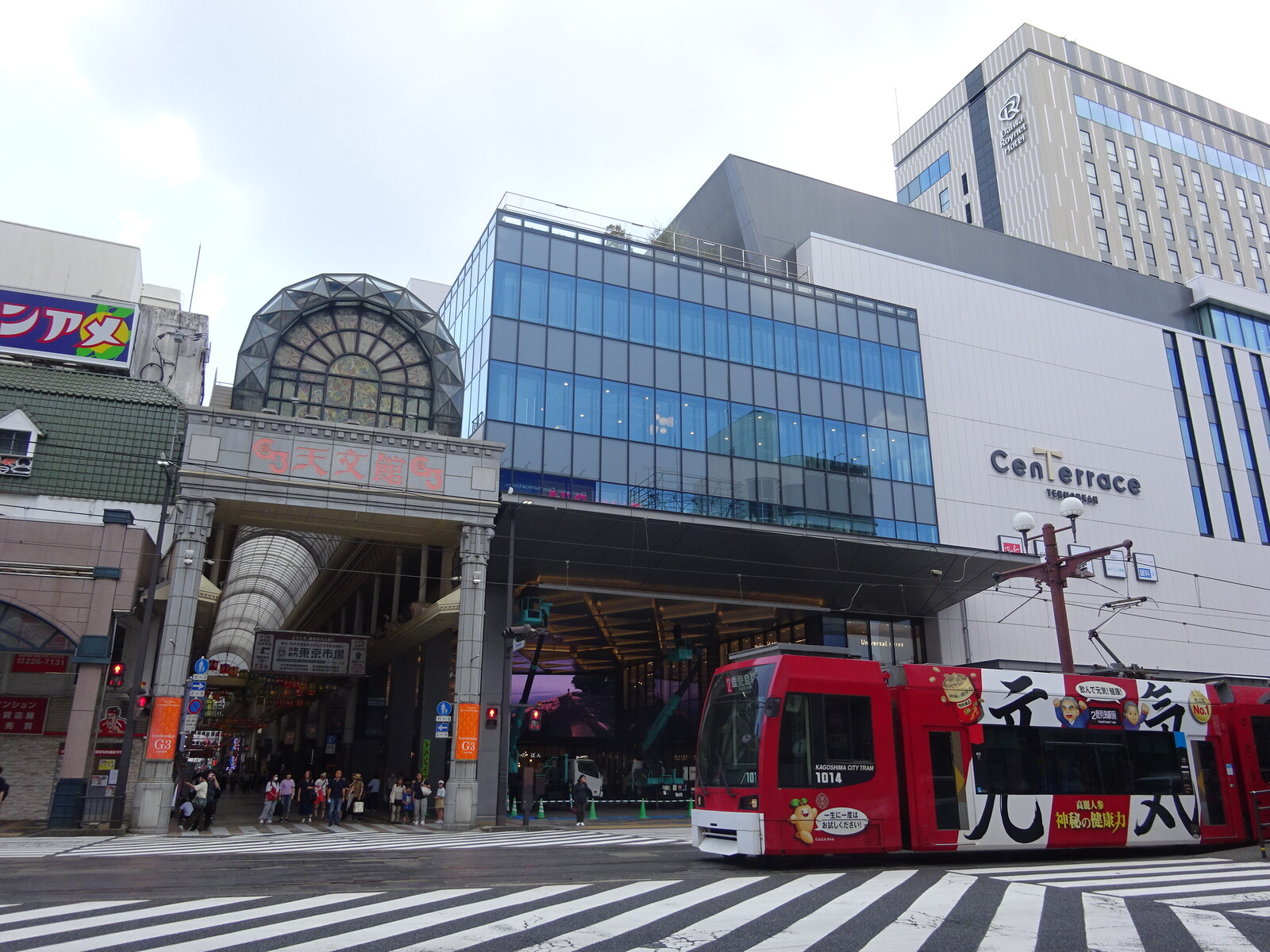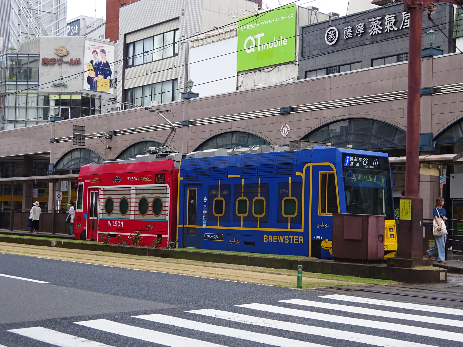 鹿児島の路面電車は、軌道敷に芝が敷かれていたり、架線を軌道敷内のセンターポールにかけていたりして、けっこうアグレッシブに運営している様子が見て取れたよ。