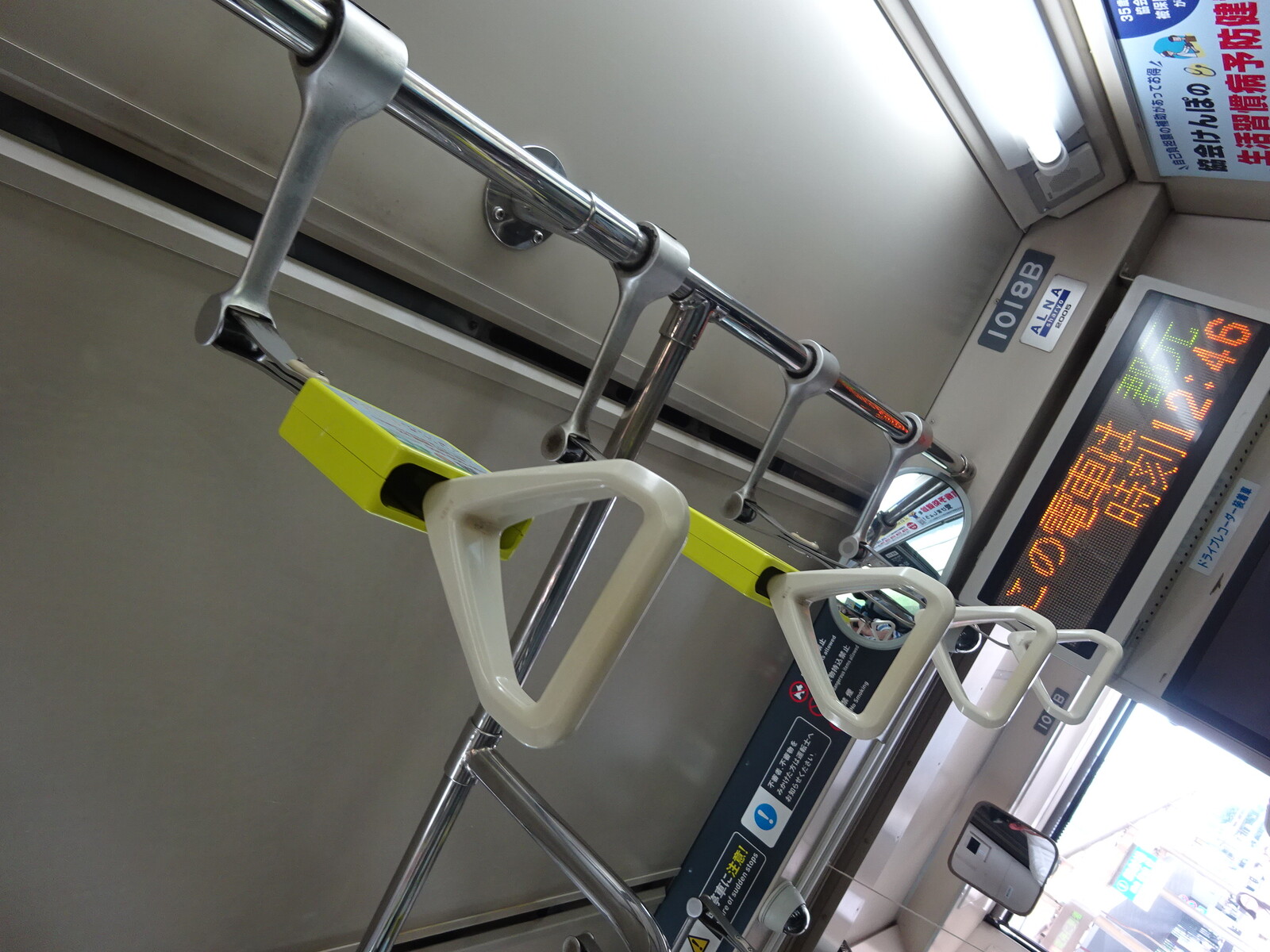 つり革がこんな具合になっていて、普段は邪魔にならない高さにあるだけど、つかんだら下がってきて安定するという、素晴らしき工夫があったんだ。