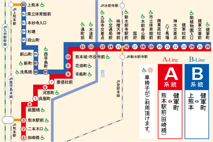 熊本市交通局の路線図はこちら。路線は少ないけど、市民には大事な路線として利用されていたよ。