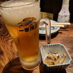 この日は同僚のSさんと、Sさんのテリトリー、高岡で飲んでみたんだ。高岡で飲むならここでしょ、といって連れられたのが、桐木町にある「炉ばた焼き 陣太鼓」。ミシュランにも載ったことのある、老舗の炉端焼き屋さんだよ。 まずは、生ビールでのどを潤すのだ。何しろ高 ...