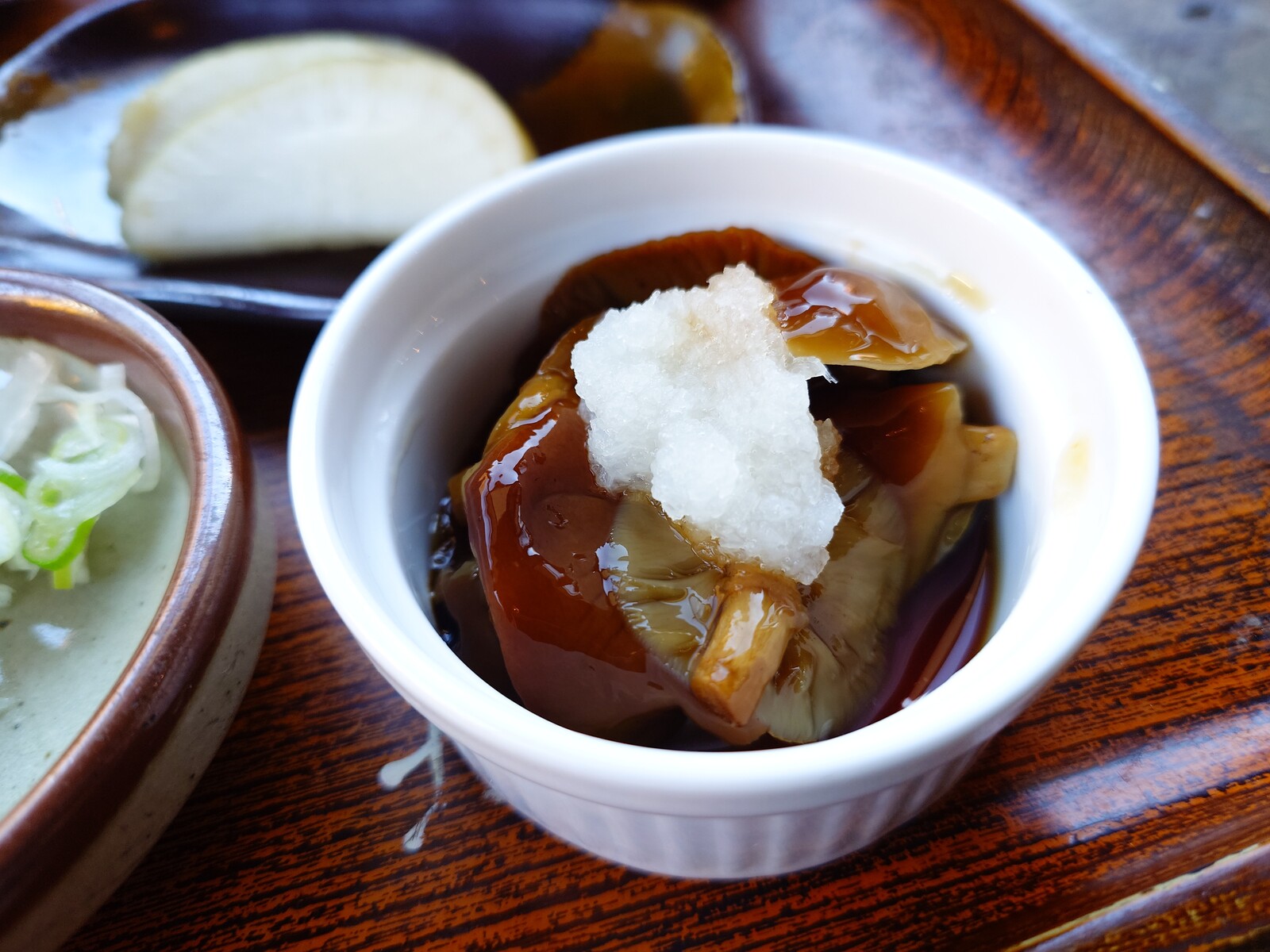 なめこは、酢の物になって小鉢に入ってたけど、これまた絶品。