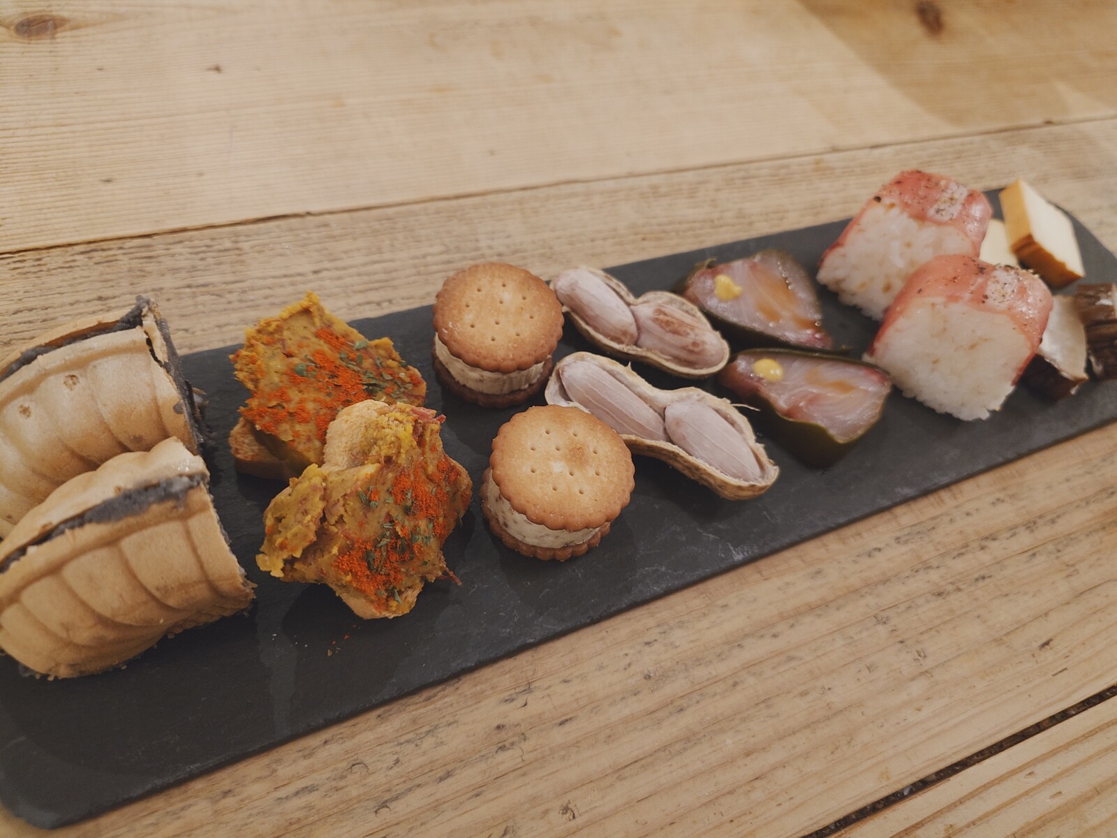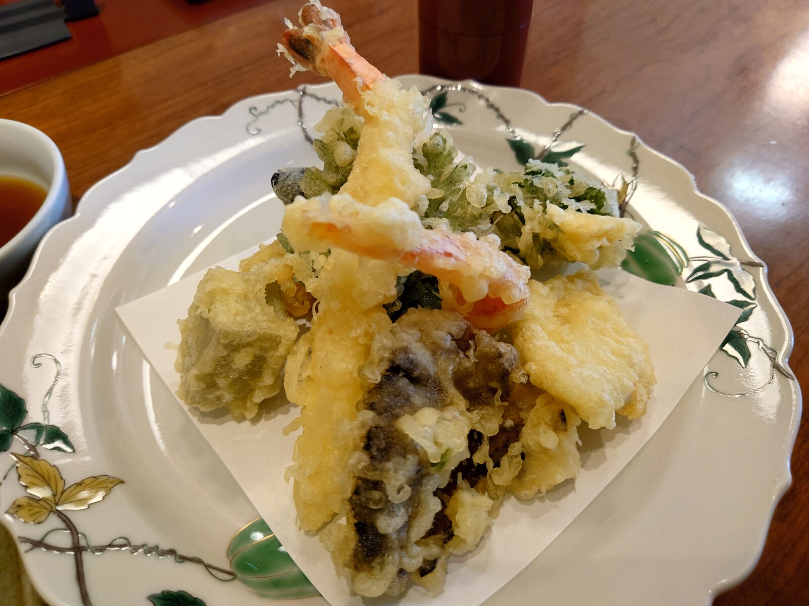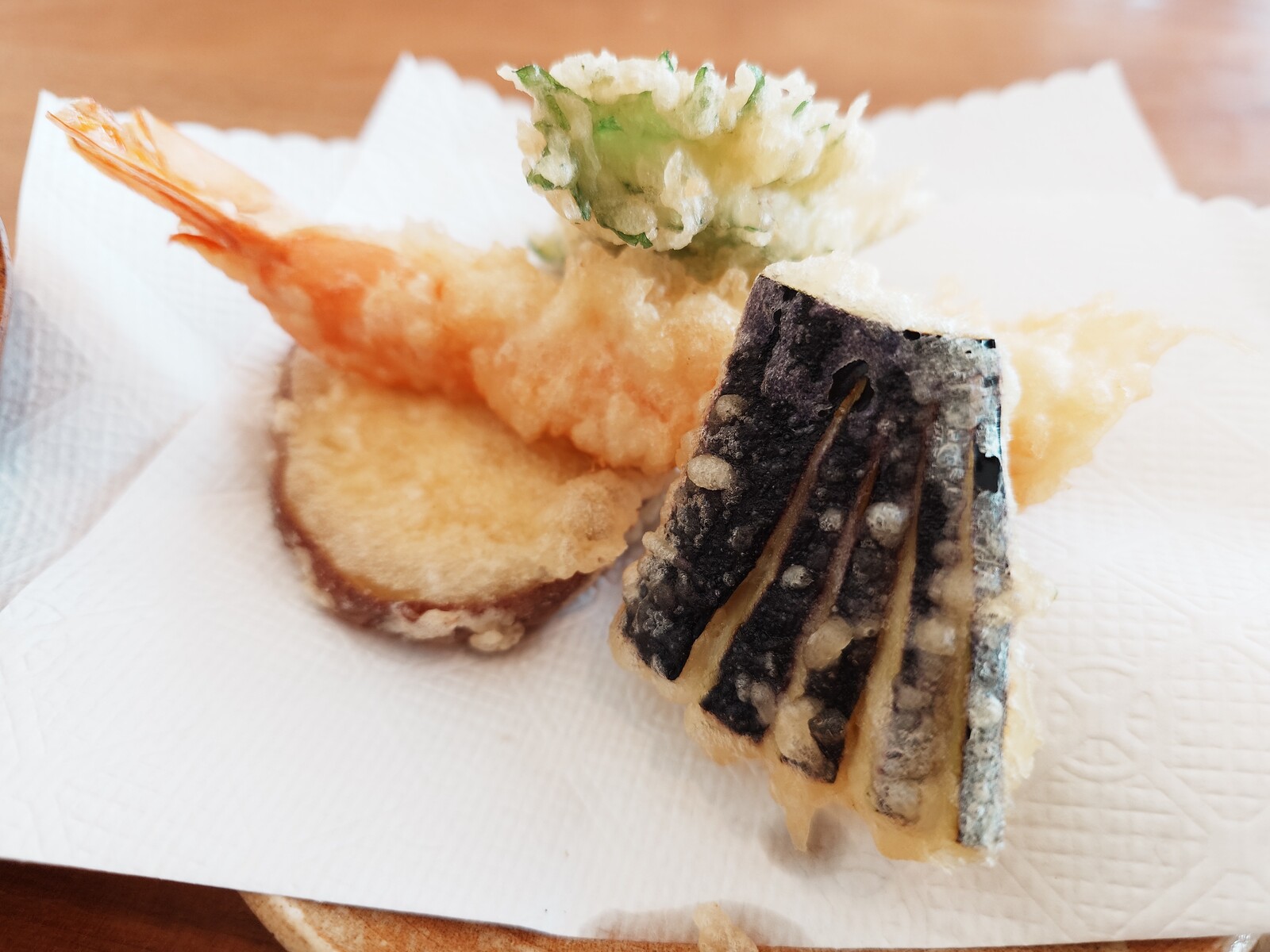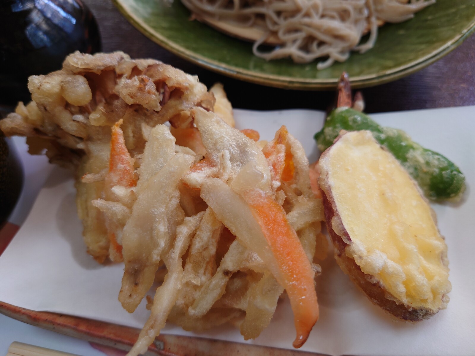 さらにうまいのが『きのこの天ぷら』。左から、舞茸、原木椎茸、むき茸、かぼちゃ、クレソン、下にあるのがなめこといったラインナップだったけど、特に『なめこ』は、一口食べて「うまっ」と声に出してつぶやいてしまったほどなんだ。