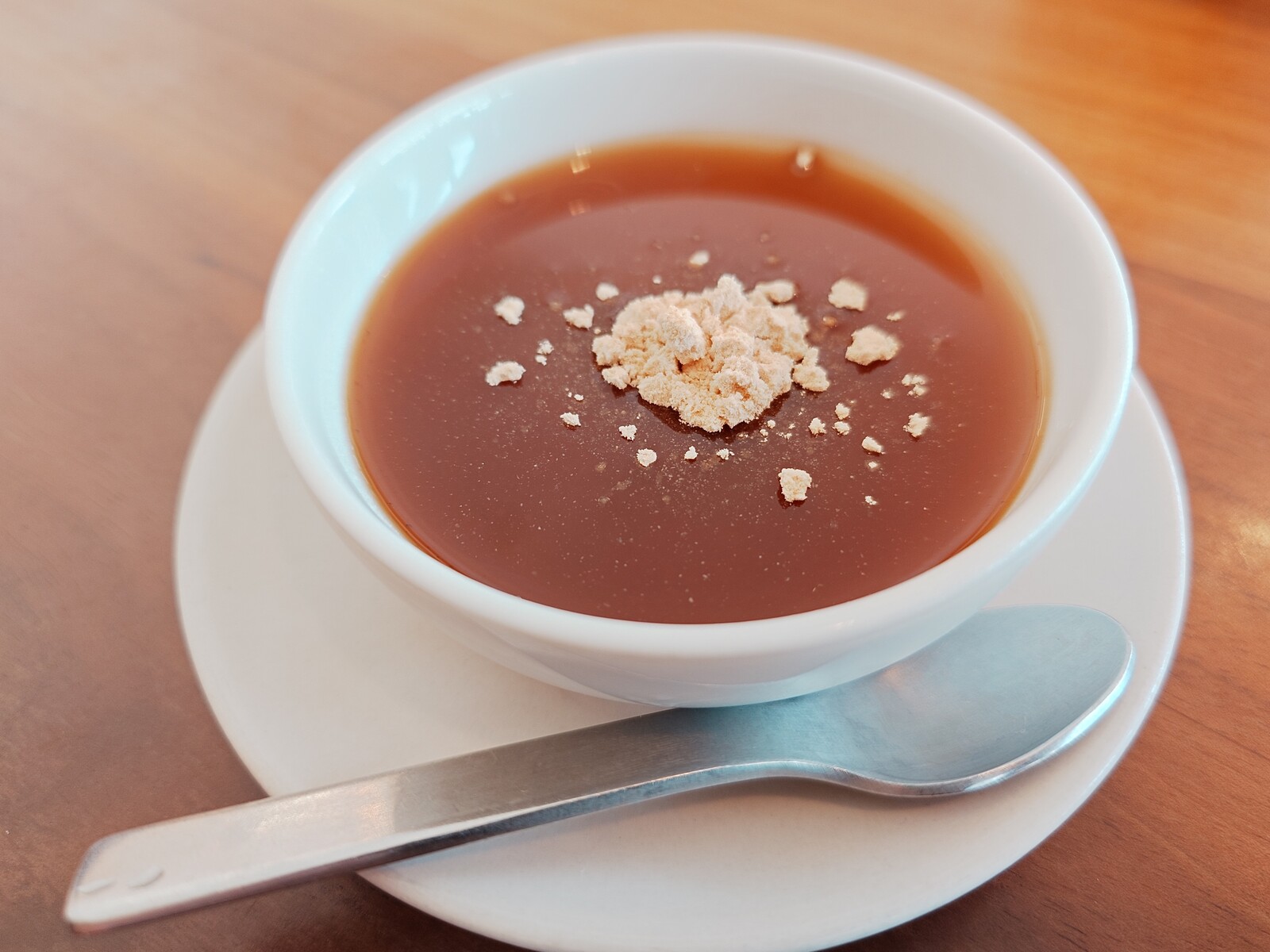 出来立てで、ふんわりと湯気が立っているそばがき。練るようにして柔らかく煮たそばがきに、ちょっとだけ出汁をつけていただけば、そばの香りが口全体に広がって、実に素晴らしい。この店に来てよかったぁ。