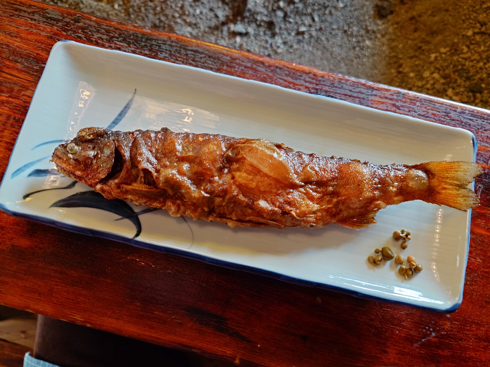 岩魚っていうのは、肉食の魚だそうで、だから鋭くてかたい歯があるんだけど、唐揚げにすれば、頭もしっぽも骨も食べられるんだ。塩をかけるだけで、ふっくらした魚の旨味を十分楽しめるのだよね。