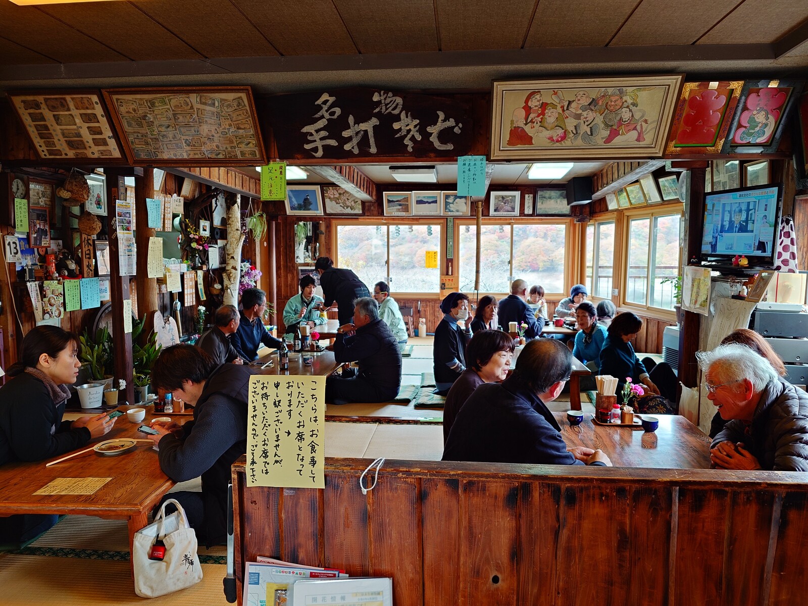 最初にこの店の前に来たときは、まだ閉まってたんだけど、扉からガラス越しに中をのぞけば、この感じでしょ。この店でそばを食べなければ、一生後悔すると思ったよ。