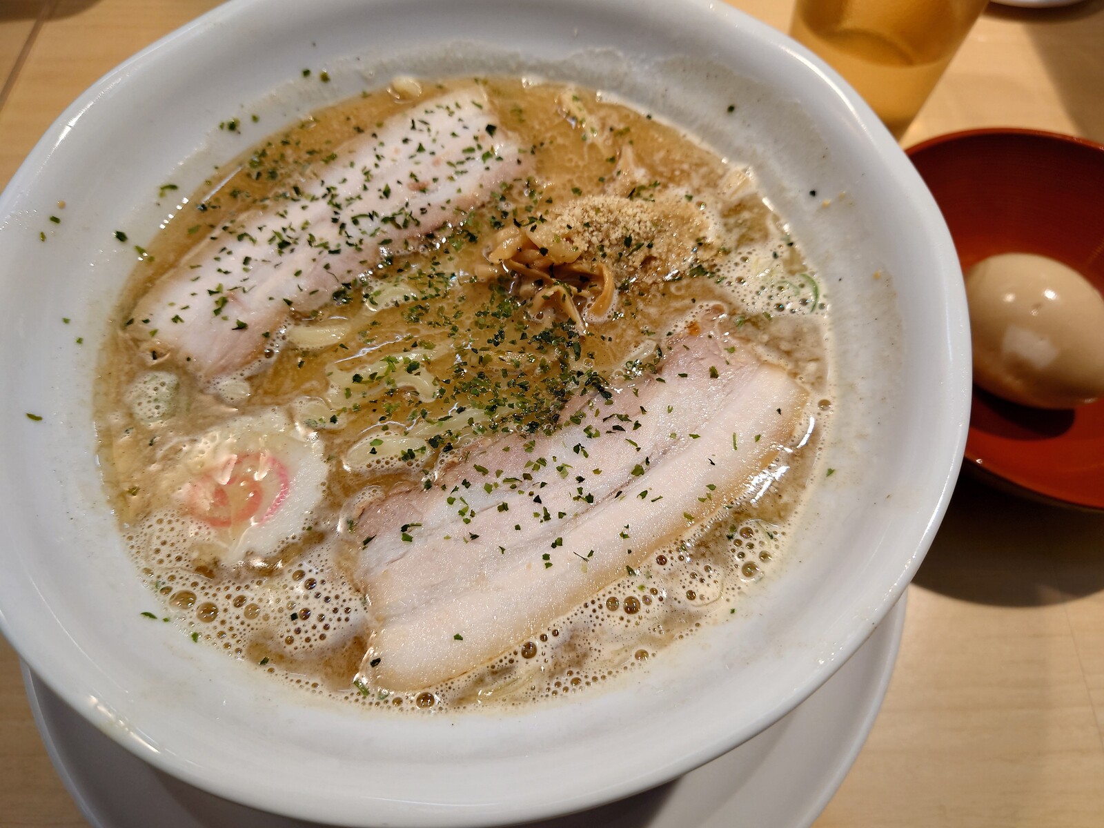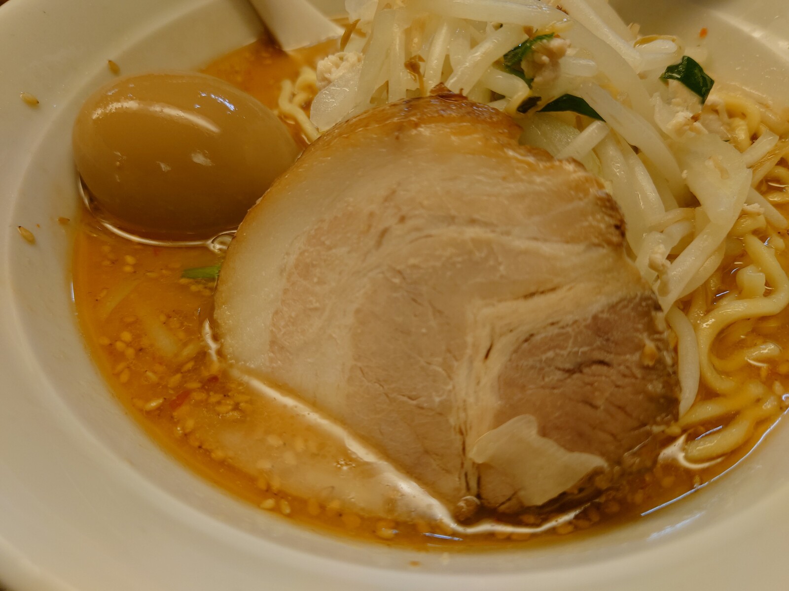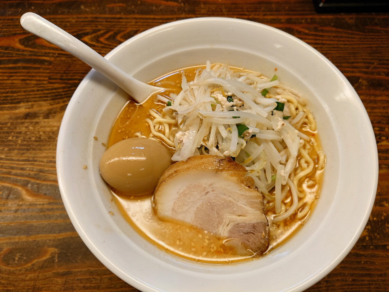 注文するのは、メニューの筆頭にある「みそ野菜ラーメン」。煮卵をトッピングしようではないか。登場したのがこちらだよ。