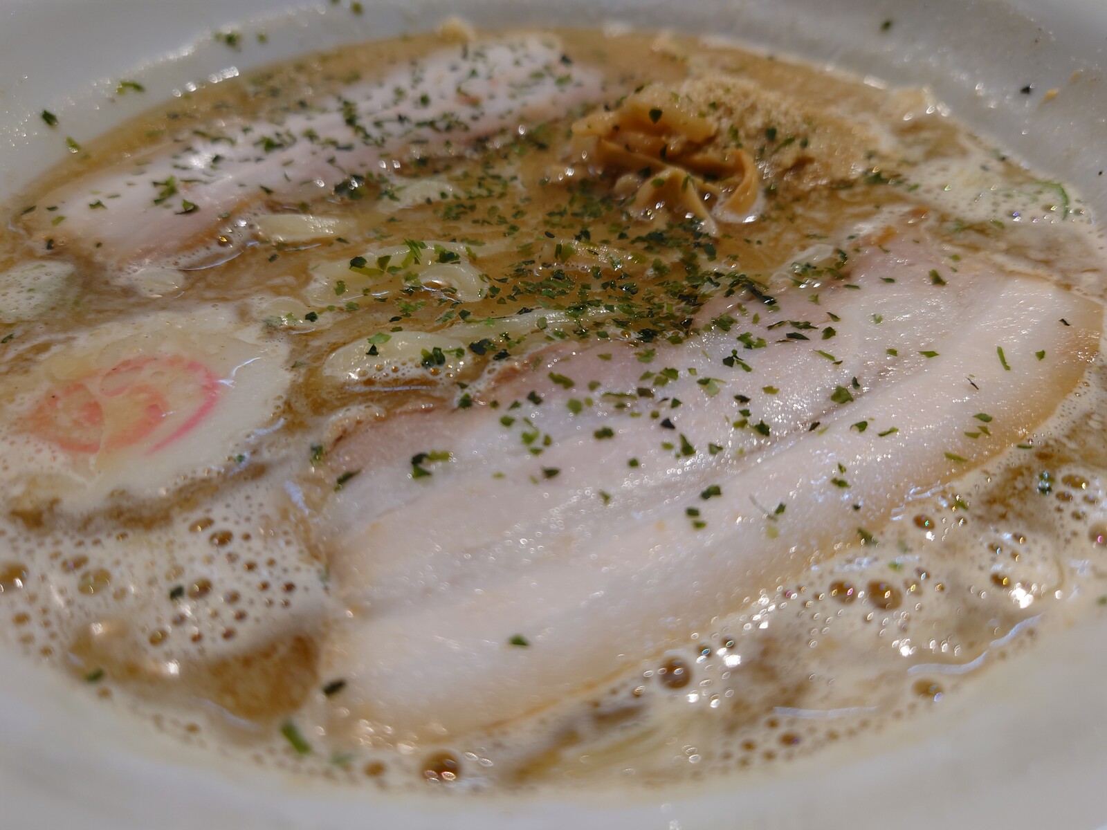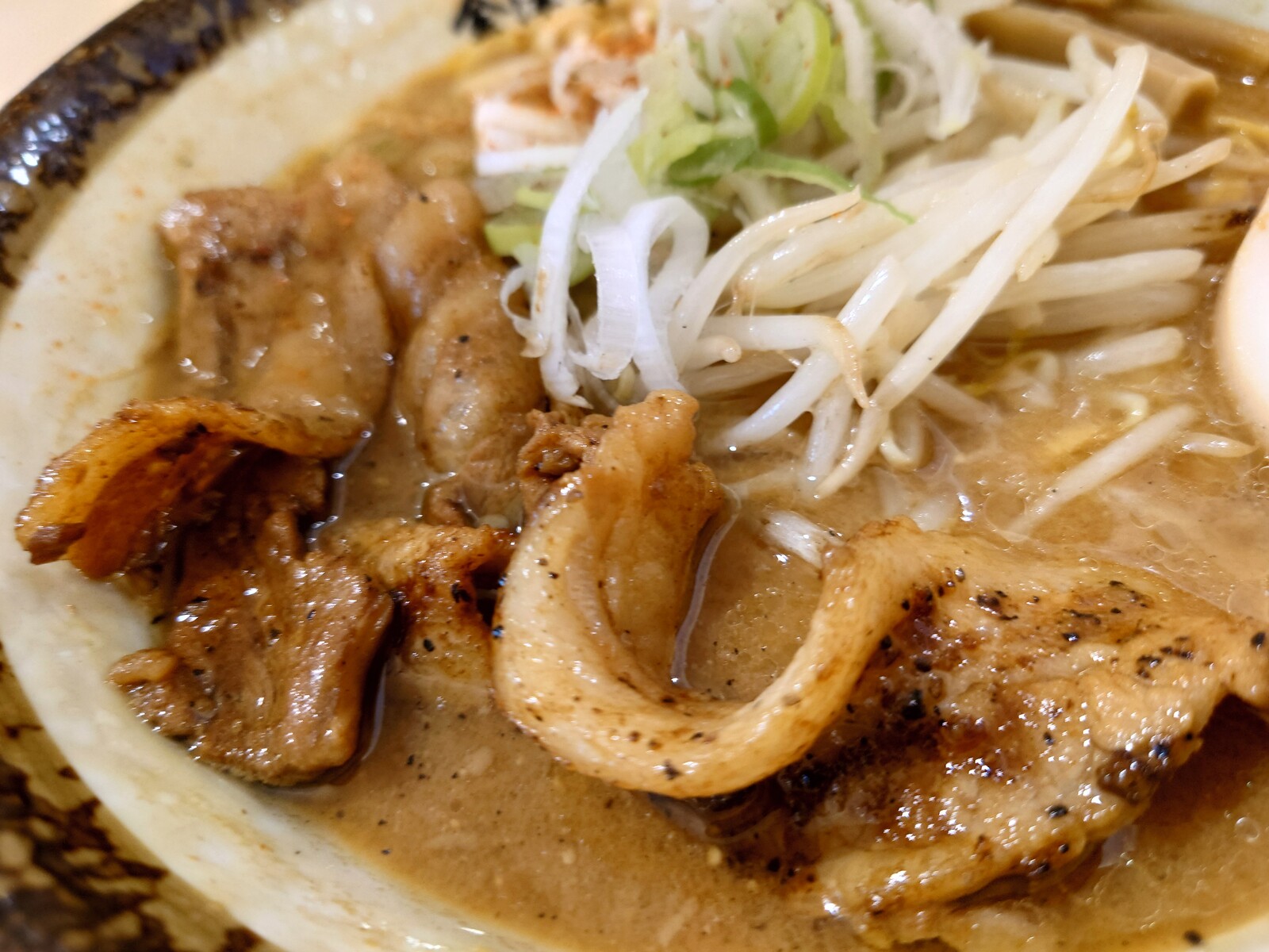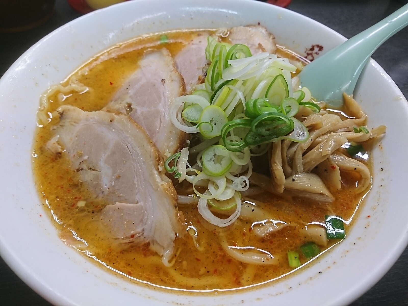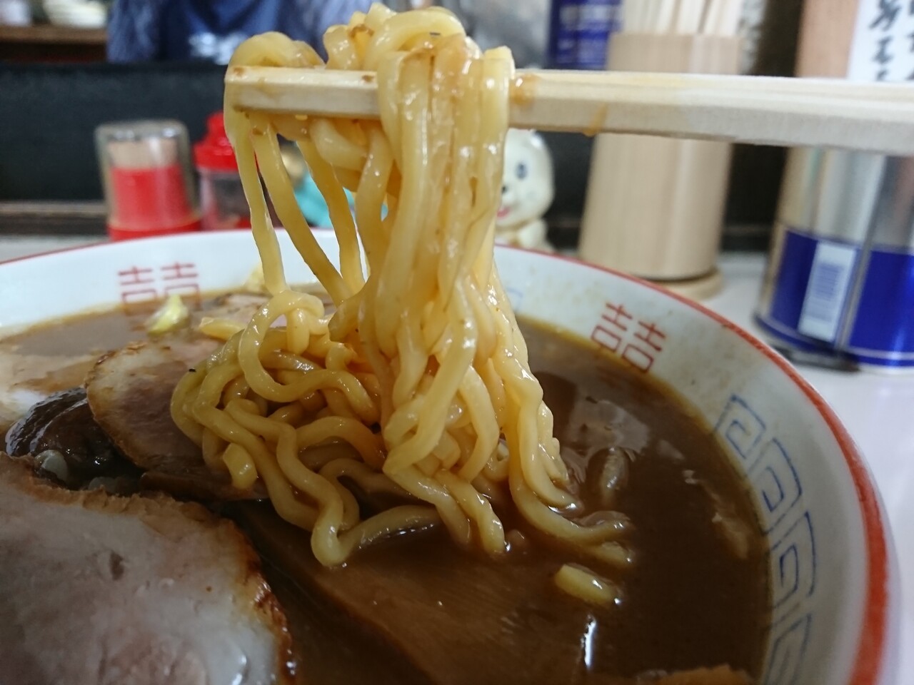 スープは濃い目でしっとりした味噌味。独特なんだけど、個性が立って確立してるんだと思ったよ。だから、人気のほども納得。麺はかなり硬めの仕上げで、かみごたえがあったよ。