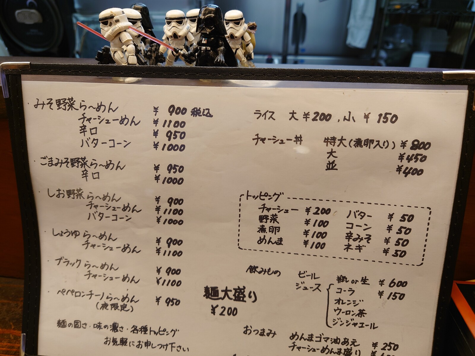 ダース・ベイダーとストームトルーパーのチョロQ風フィギュアが、かわいくディスプレイしてあるねぇ。
