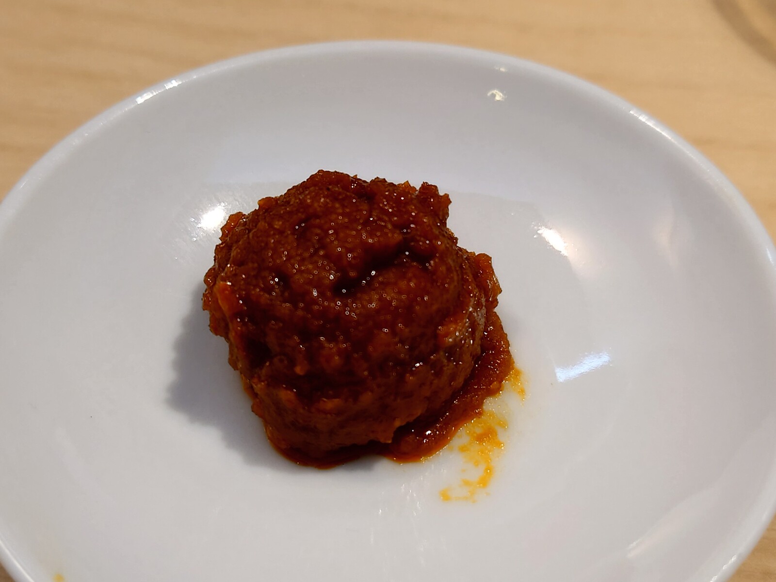 。もやしとニラを鶏ミンチと一緒に炒めてあるんだけど、このニラが、みそスープに実にマッチしていたんだ。胡麻を浮かべて香り豊かにしてあるのもいい感じだったね。