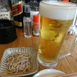 この日は、総曲輪通りに並行して走る1本北の通り沿いにある居酒屋「笑色(わらいろ)」で、昼飲みしてみたよ。以前は、いつ前を通りかかってもお客さんがぎっしりのお店だったけど、コロナ時代の昨今、ボク一人が入れるくらいには席が空いていたんだ。 まずは、生ビール。 ...
