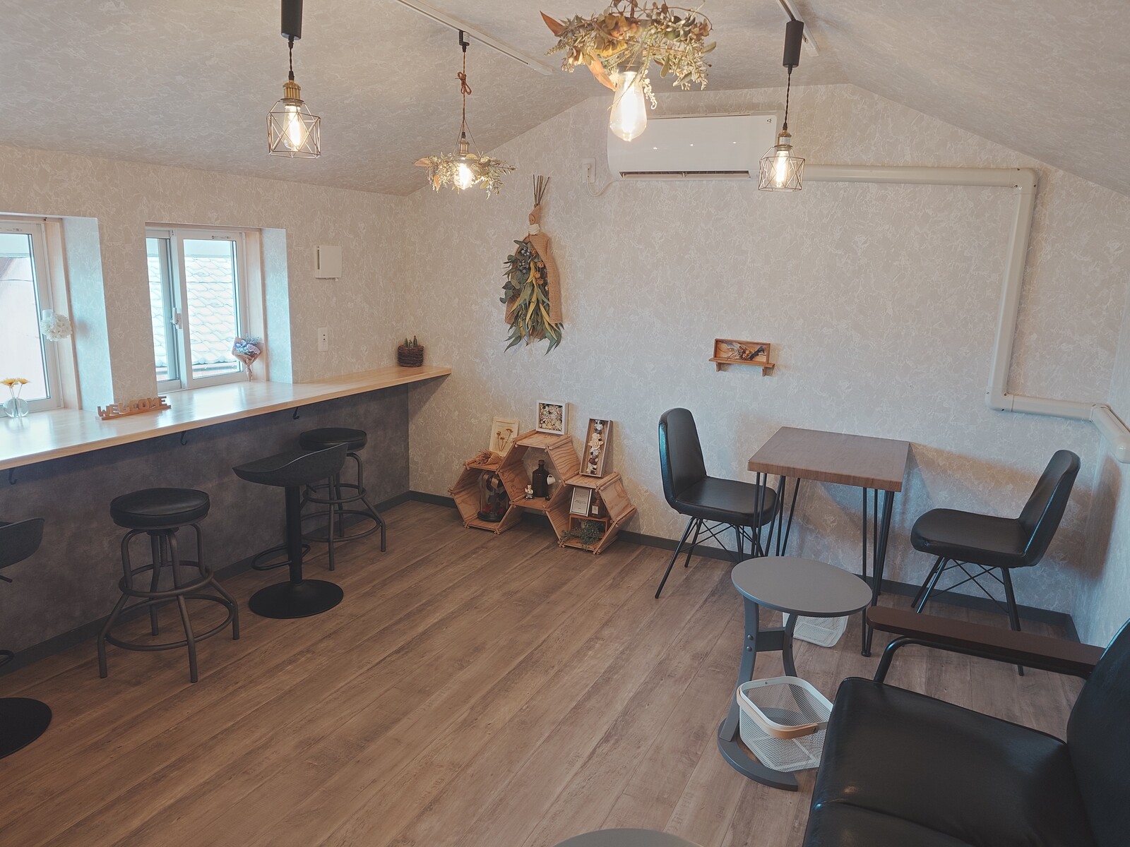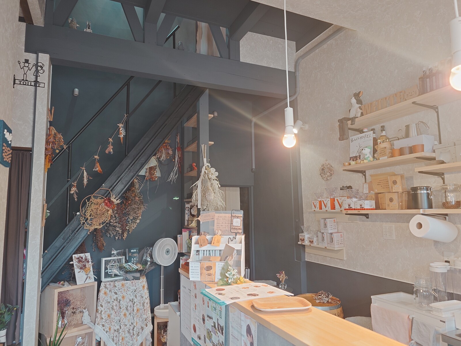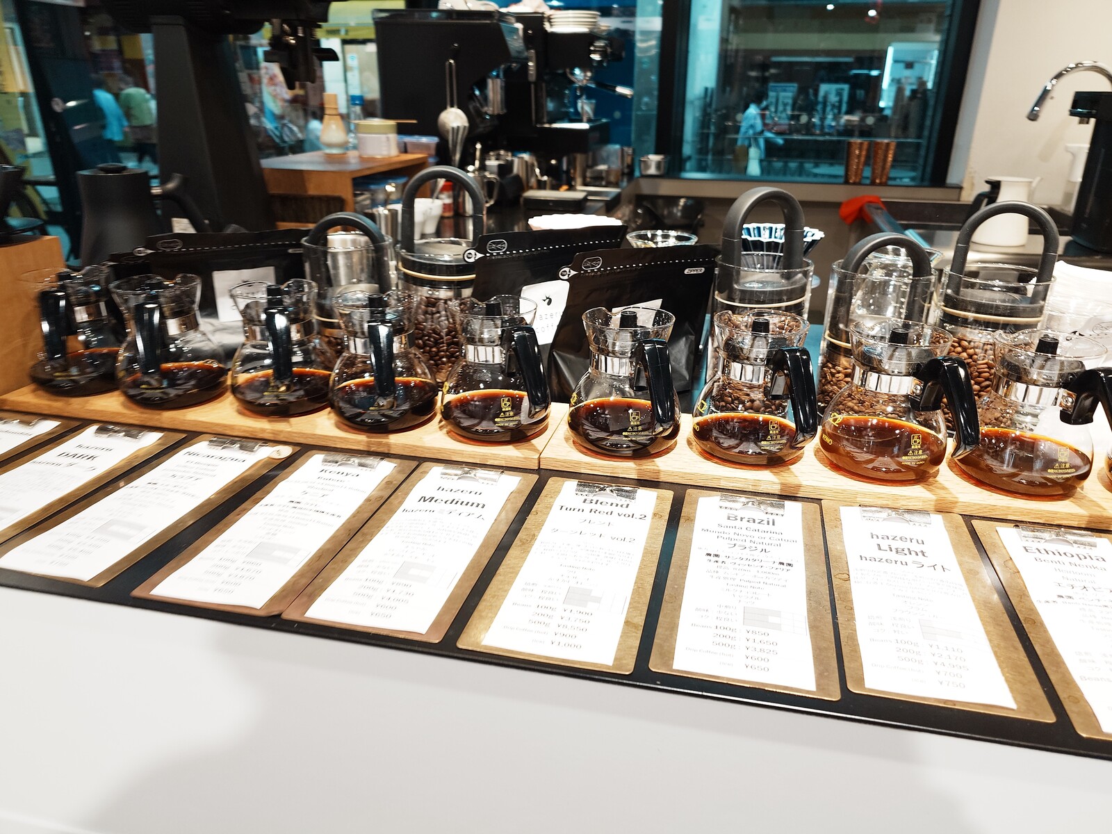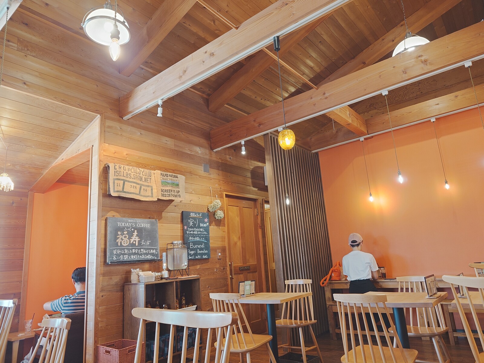 とはいえ、一休みできるように、カフェスペースも設けられていたんだ。「jigen coffee」は、白壁のコーヒー専門店。木目調の落ち着いたテーブルと椅子が並んでいて、コーヒーを飲みながらゆったり時を過ごすのだ。