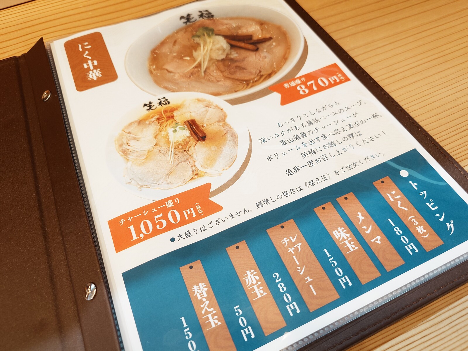 注文するのは、いつもの『チャーシューメン』。脂身の少ない、肉肉しいチャーシューがたっぷりのった、それでいて、とってもリーズナブルな一杯を、この日もいただいたよ。
