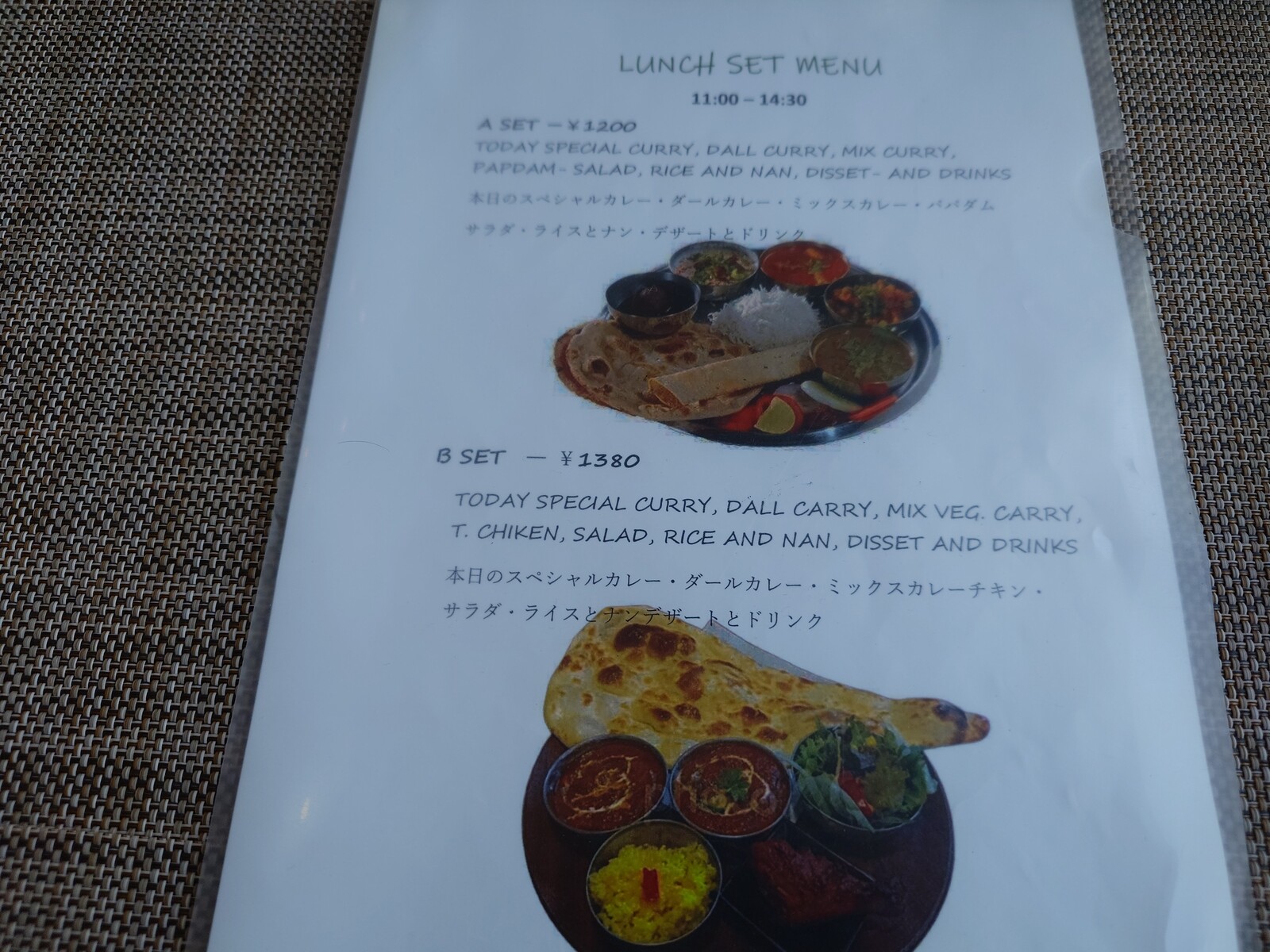 注文したのは『タンドリーセット』のLサイズ。