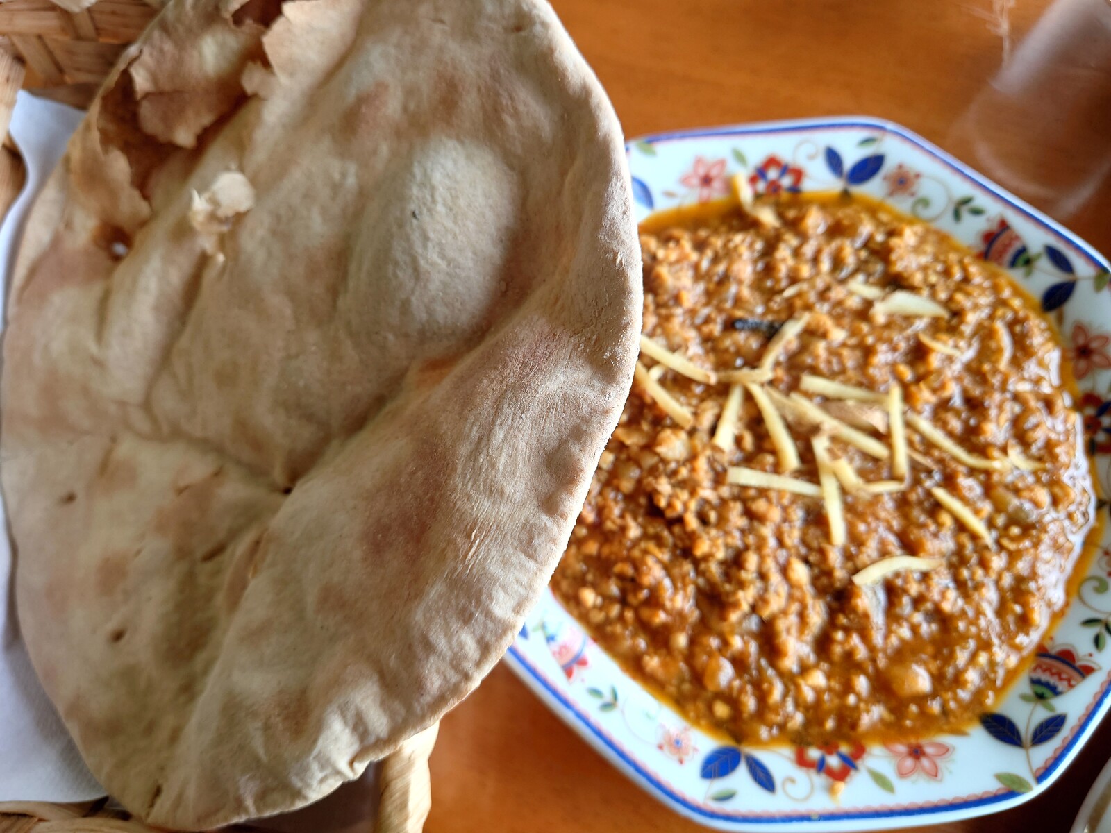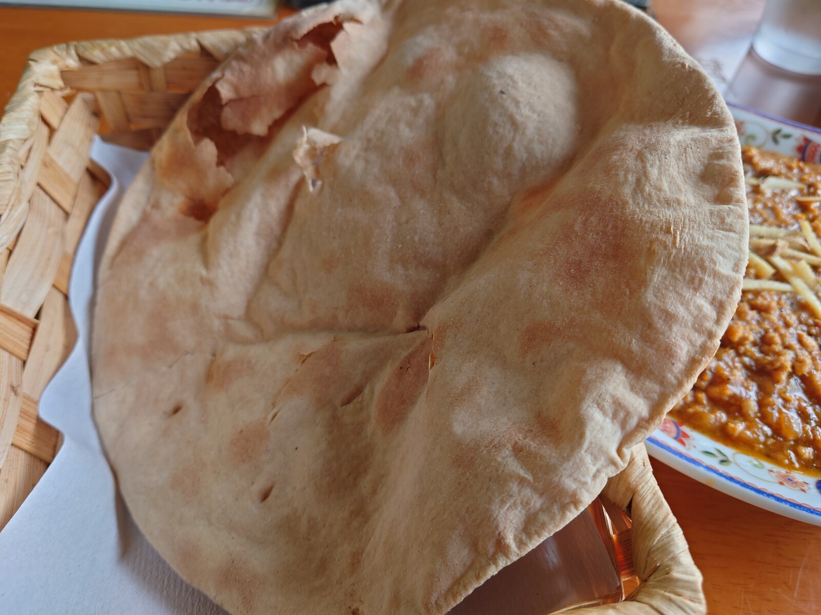 大き目のナンをカレーにひたして食べる。