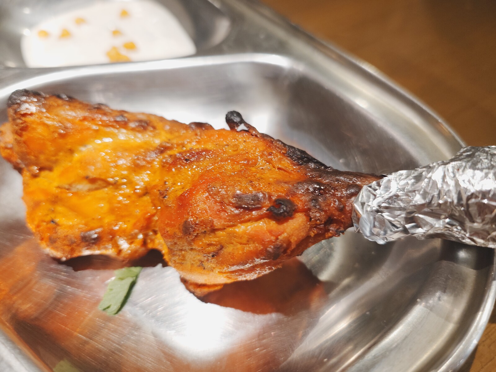 タンドリーチキンのソースにもひたしてみる。