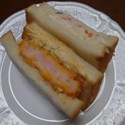 パンドールの海老かつサンドイッチはゆで玉子とポテサラ入り