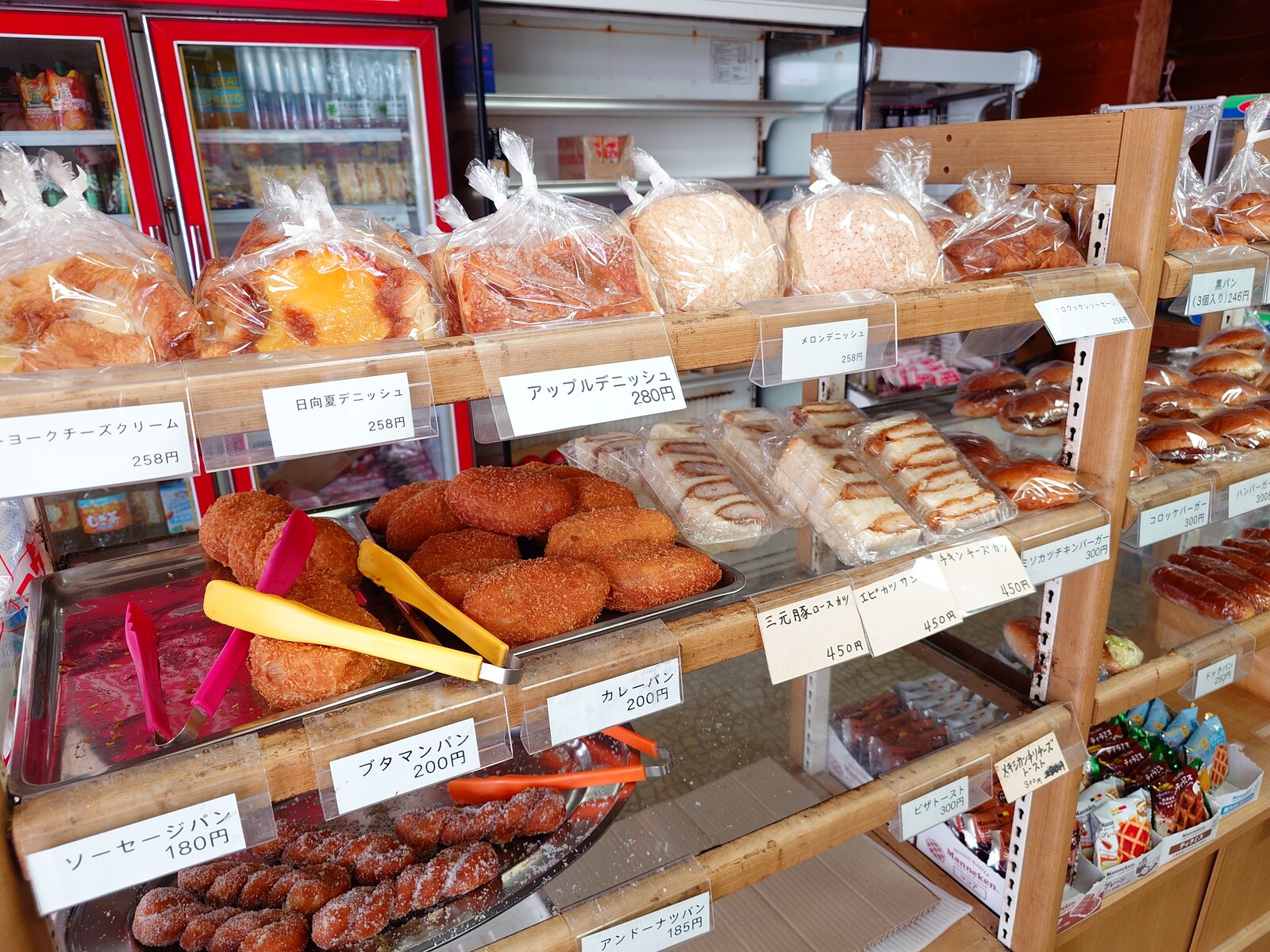 『メロンパン』『メロンパンナのクリームメロンパン』『アンパンマンの顔したクリームパン』『ソーセージフレンチ』といった顔ぶれだよ。あ、お店の商品名ではなくて、品物の特徴からボクが命名した名前なのでお許しを。