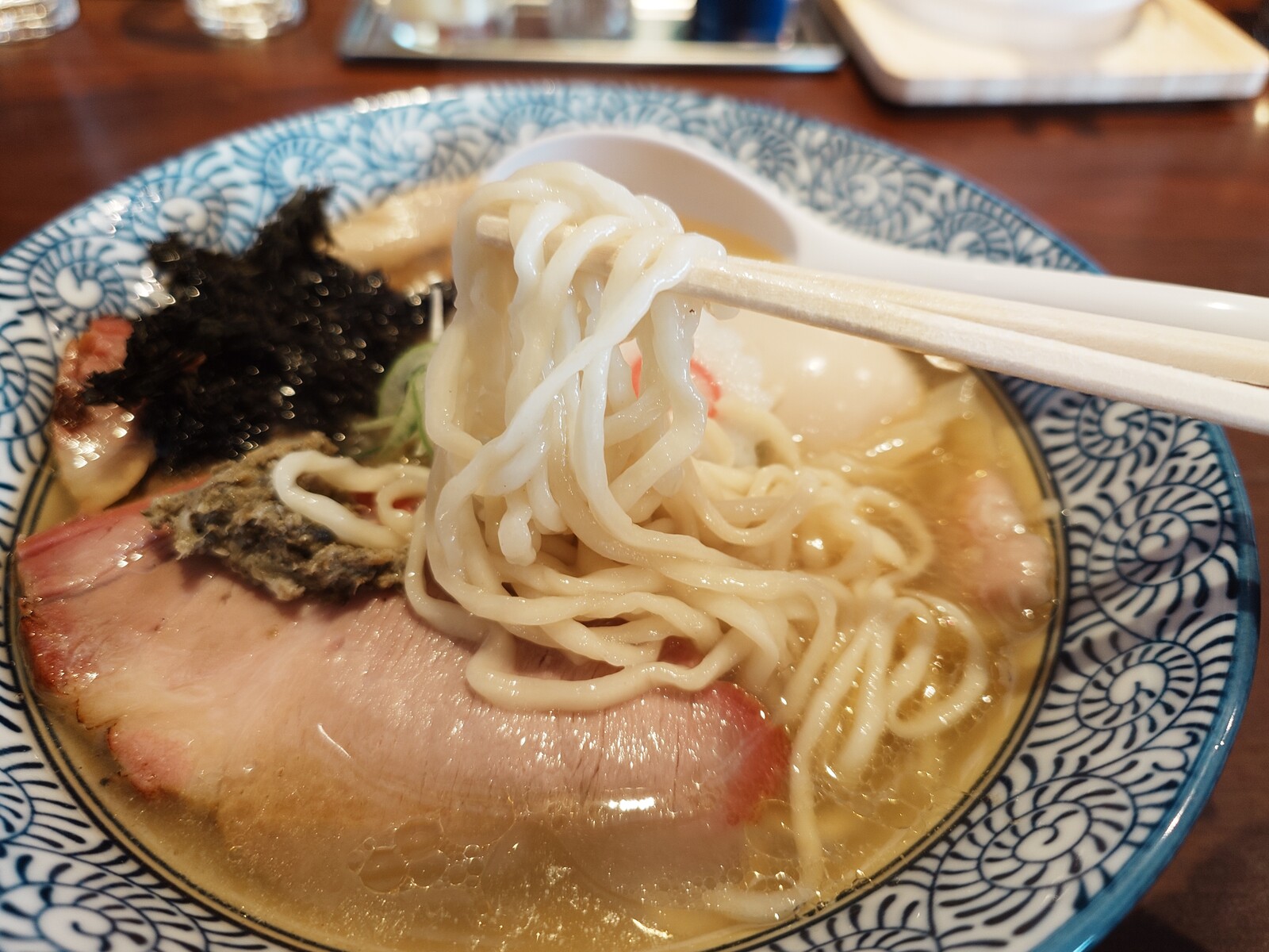 旨味の効いたスープがいい感じ。つるりと食べてしまえる、人気があるのも納得の一杯なのだ。