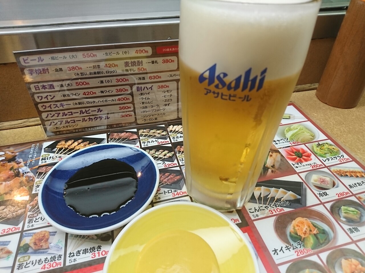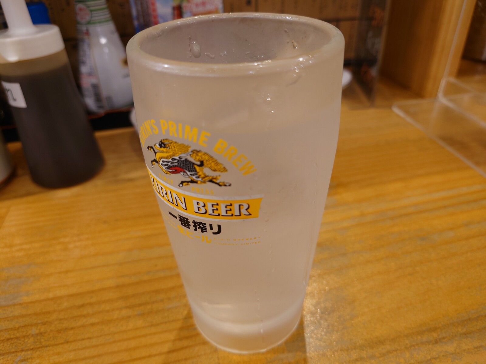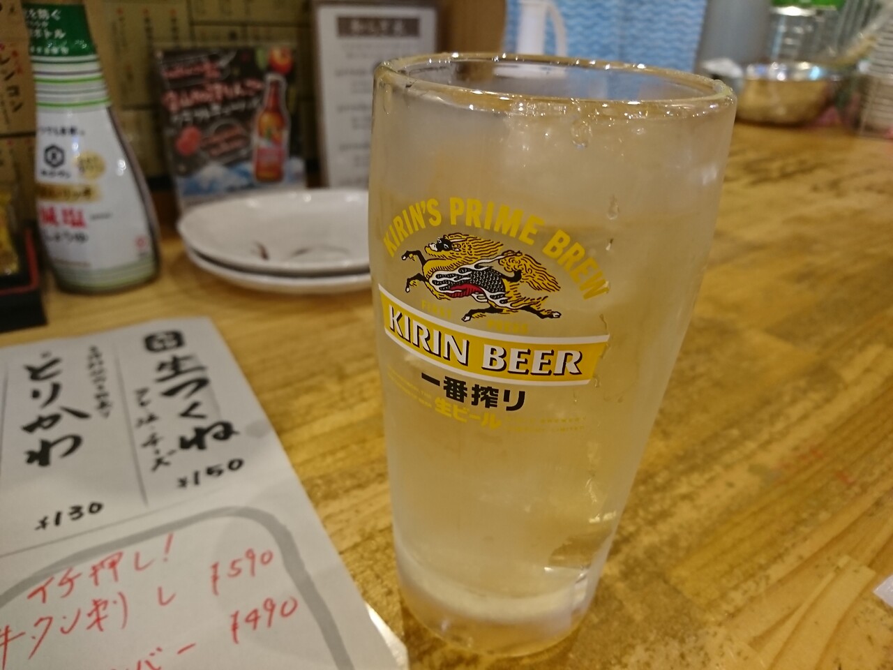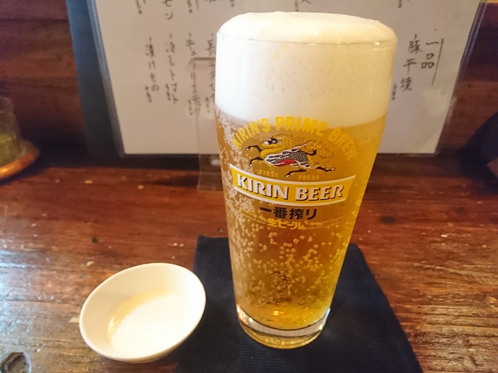 では、カウンターに腰かけて、『生ビール』をいただこう。最近、にわかに暑さが募っているから、冷たいビールがしみるよねぇ。