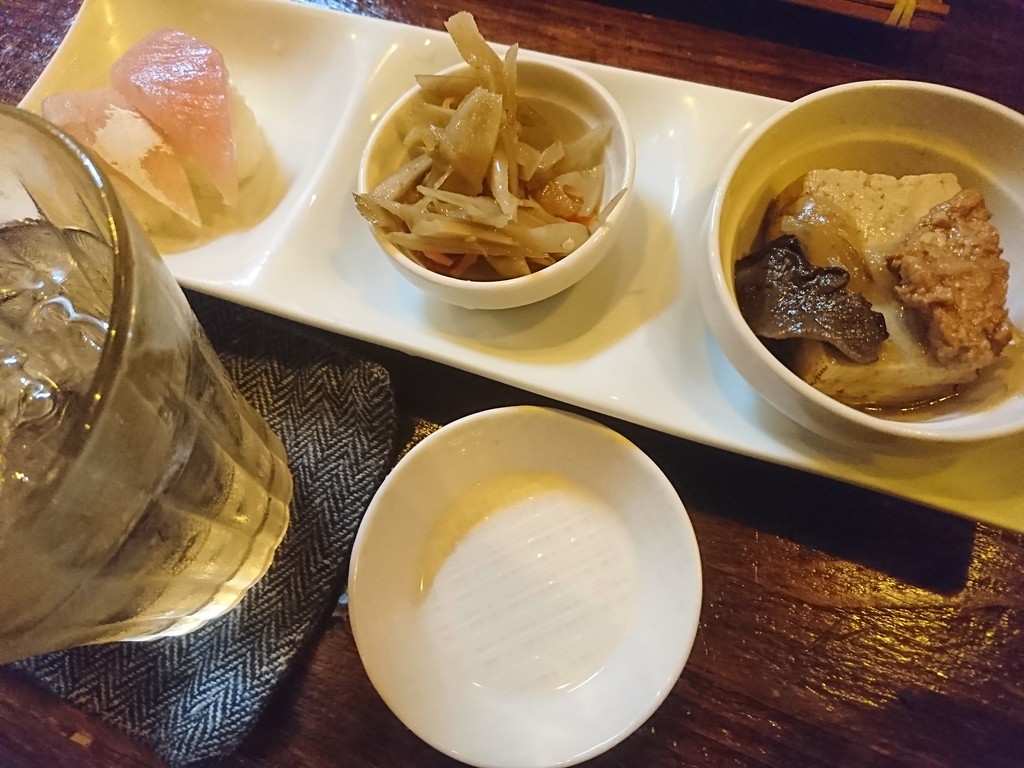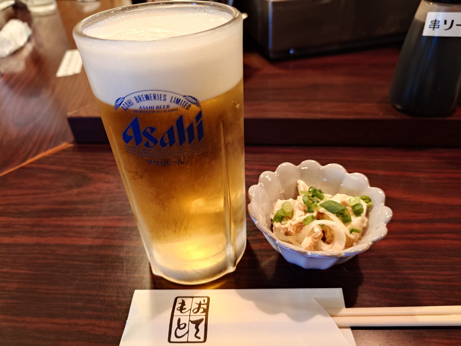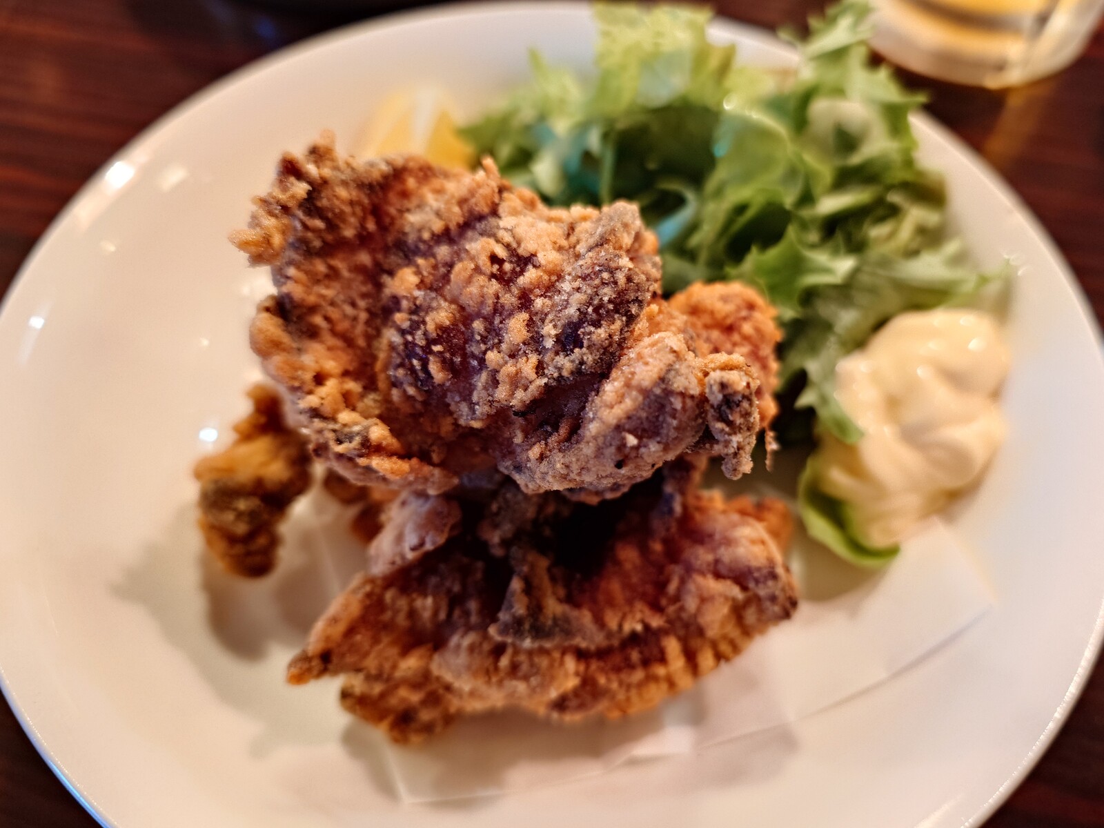 串揚げとは対照的に下味をしっかりつけて濃厚な味わいの唐揚げは、ハーフでも提供してくれるという、一人飲みにはやさしい展開。これまた、さくさくっと揚がっていて、レモンを絞ってもよし、マヨネーズをつけてもよしの、素晴らしき鶏唐だったよ。