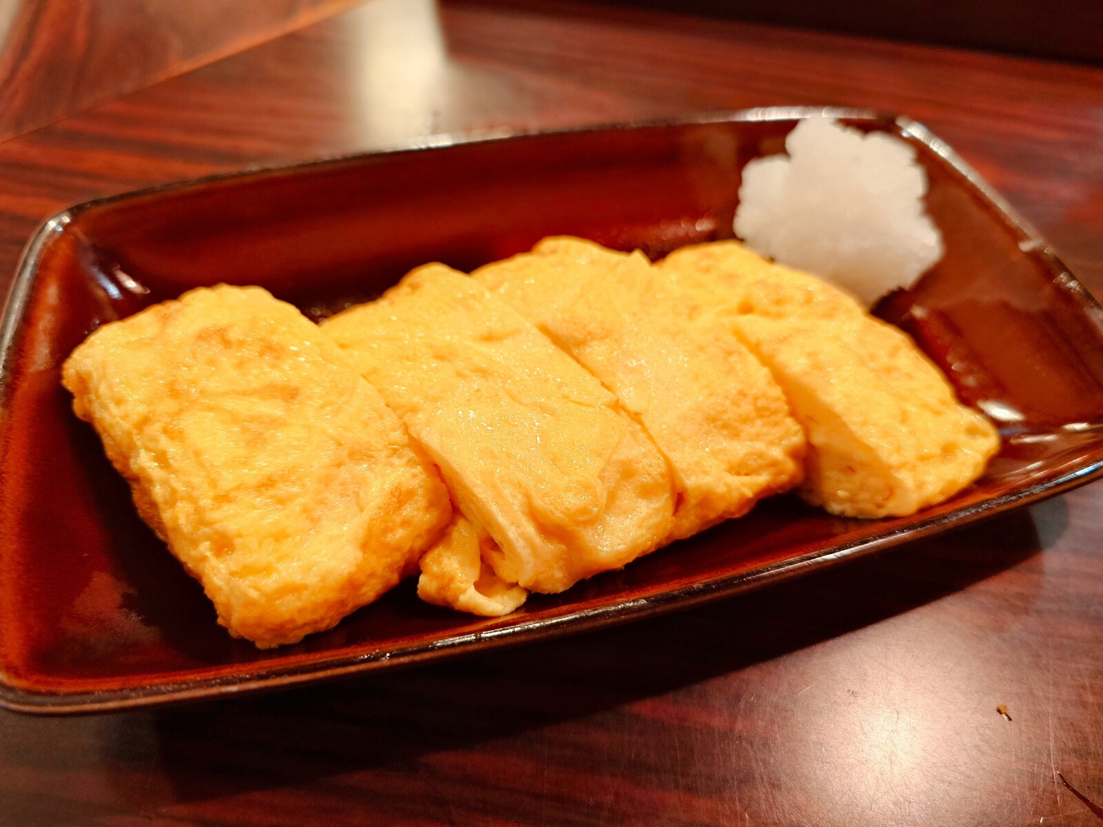 『玉子焼き』があったからたのんでみたら、こちらも「ハーフにできますよ」って言われたんだ。頼んでみたらけっこうなサイズ。レギュラーだったら、どんな大きさだったんだろ。