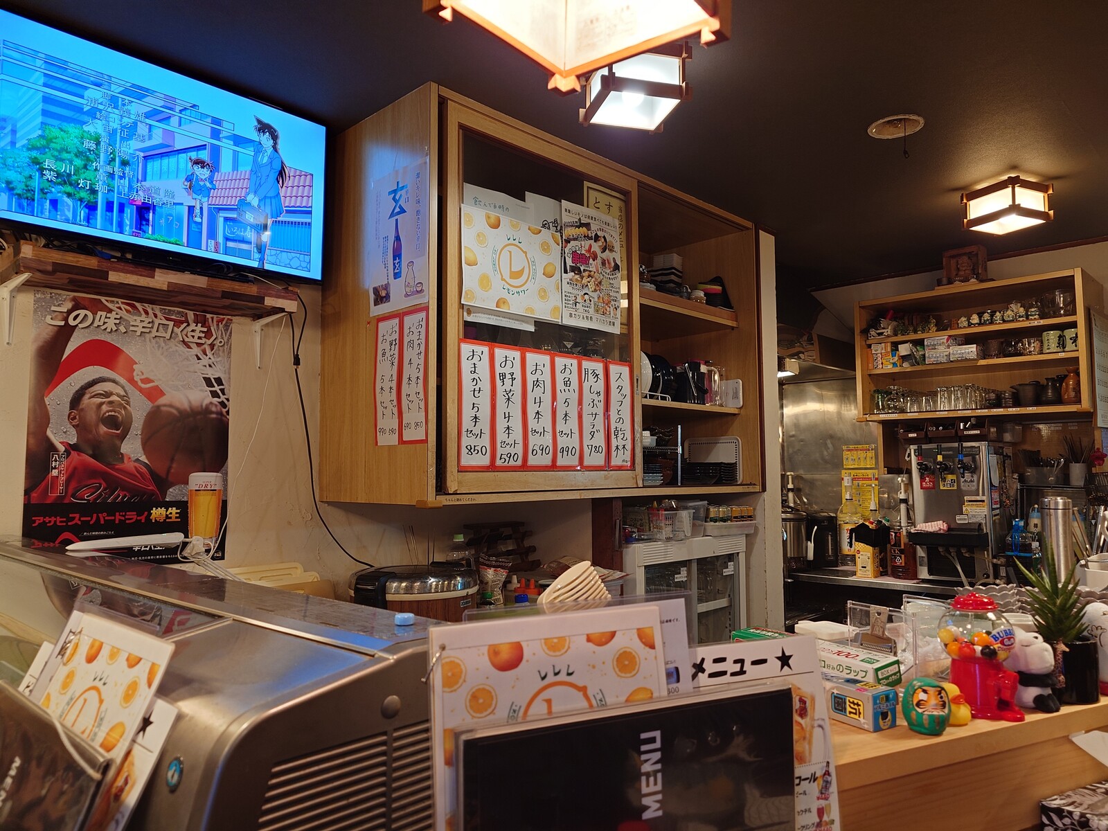 カウンターとテーブルが2卓ぐらいの小さな店。こういうこじんまりしたお店って、なんだかとっても落ち着くよねぇ。
