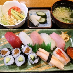 この日は、五福の大学前電停近くで昔から営業してる老舗のお寿司屋さん「喜寿司」で、ランチしてみたんだ。「喜寿司」と書いて「よしずし」と読むこのお店は、同じく老舗の食堂「つるや五福店」のお隣にあるよ。 この日頼んだのは、『ランチ盛り合せ(1600円)』。握りが ...
