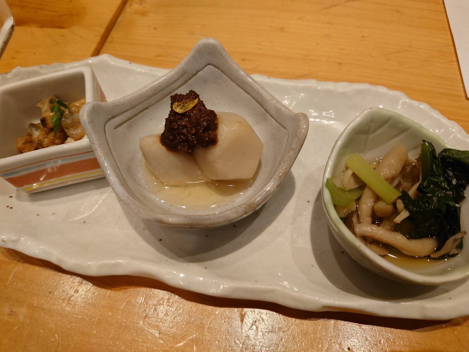 一人分ずつの鍋に入ってきた『牛すじ鍋』は、濃厚な味噌味が牛すじにしみしみでこれまた見事。うわさ通りの素敵な料理が次々と出てきて、すっかり満足した夜だったんだ。