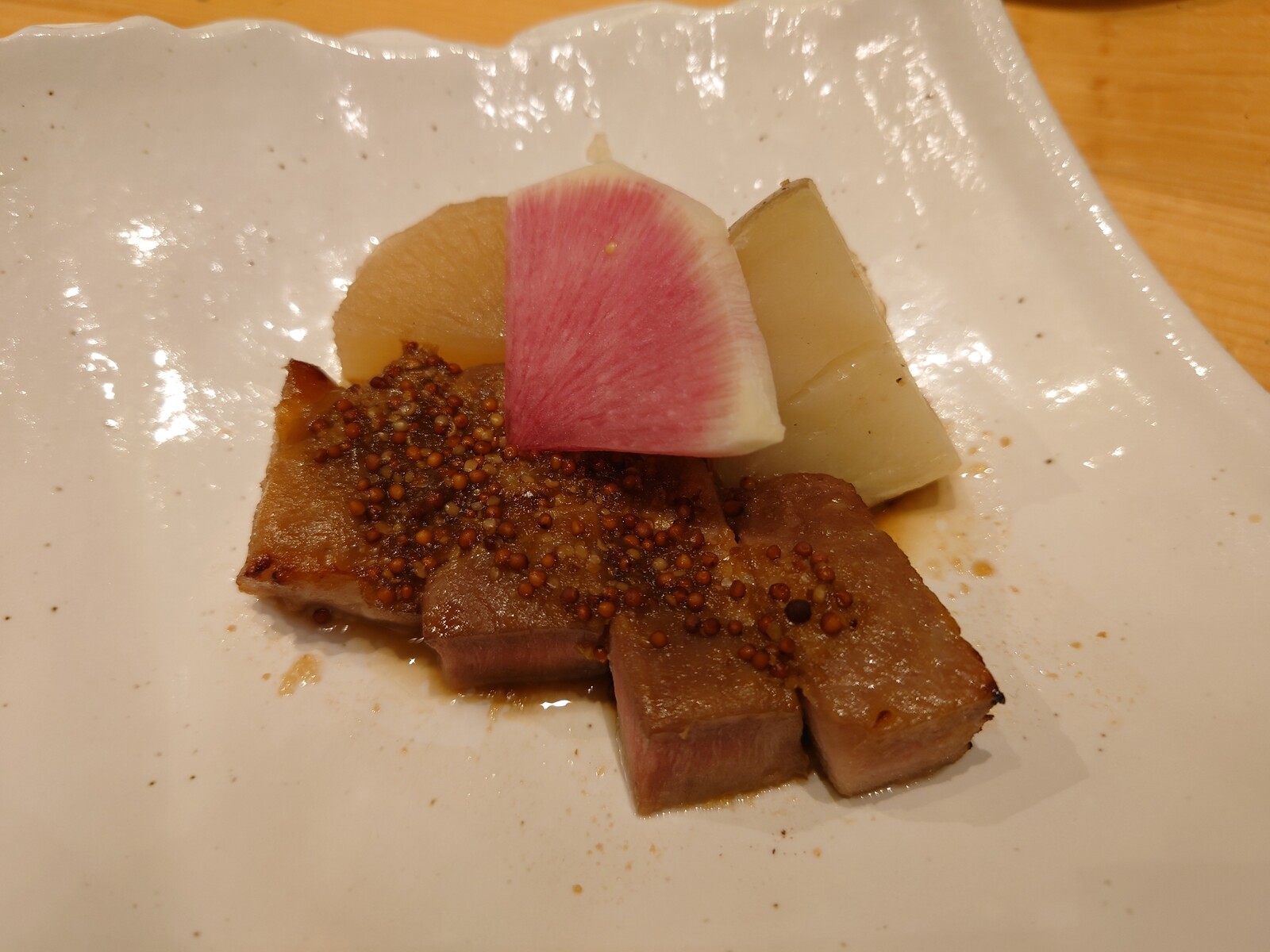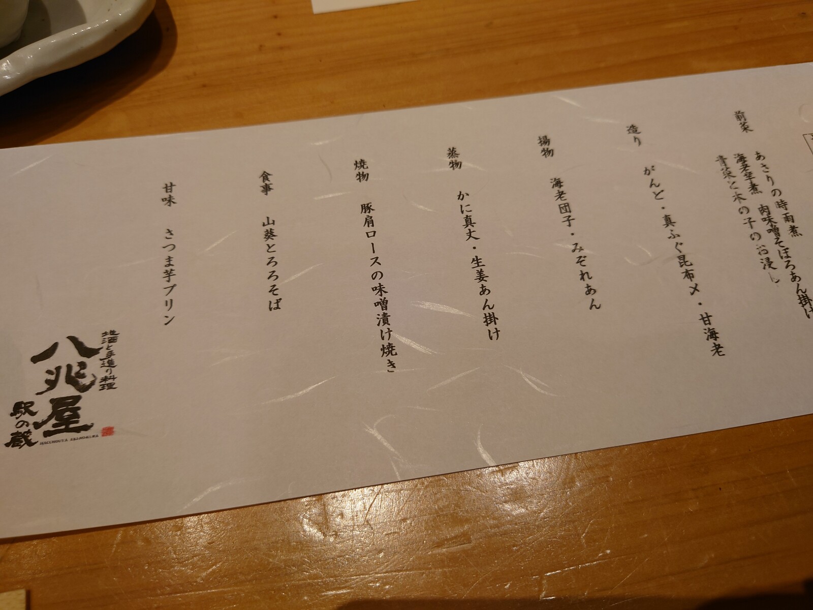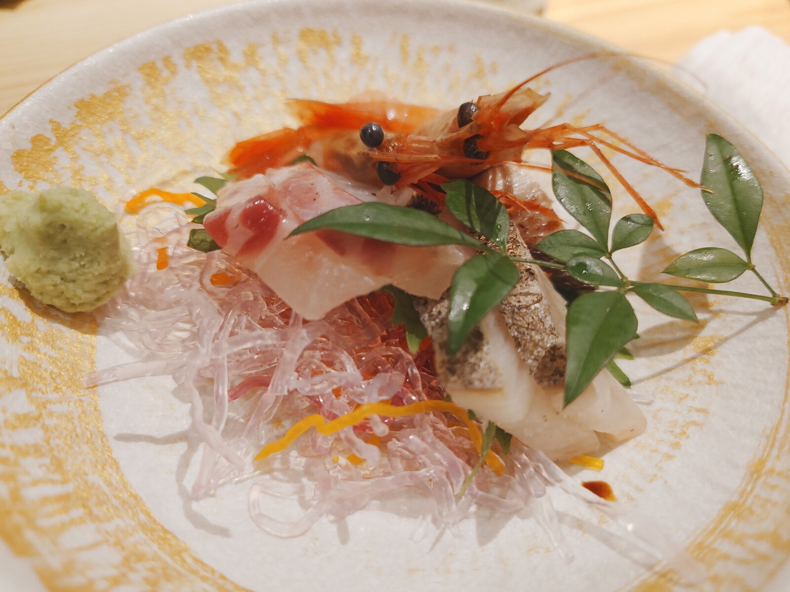 今の季節の一番いいところを造りにしていただいたよ。お皿が美しく、刺身のつまも見た目麗しい、絶品の造りだったんだ。