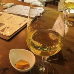 バレスコで白ワインと一緒にアイスを食べる