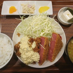 この日は、東部中学校にほど近い田中町の住宅街の中にあるとんかつ屋さん「洋食亭 かつ貴」で、お昼ご飯を食べたよ。メガ盛りチキンソースカツ丼で有名なこのお店で、揚げ物三昧してみたくなったんだ。 この日注文したのは、『フライ盛定食』。チキンカツ3枚、鶏唐揚げ2 ...