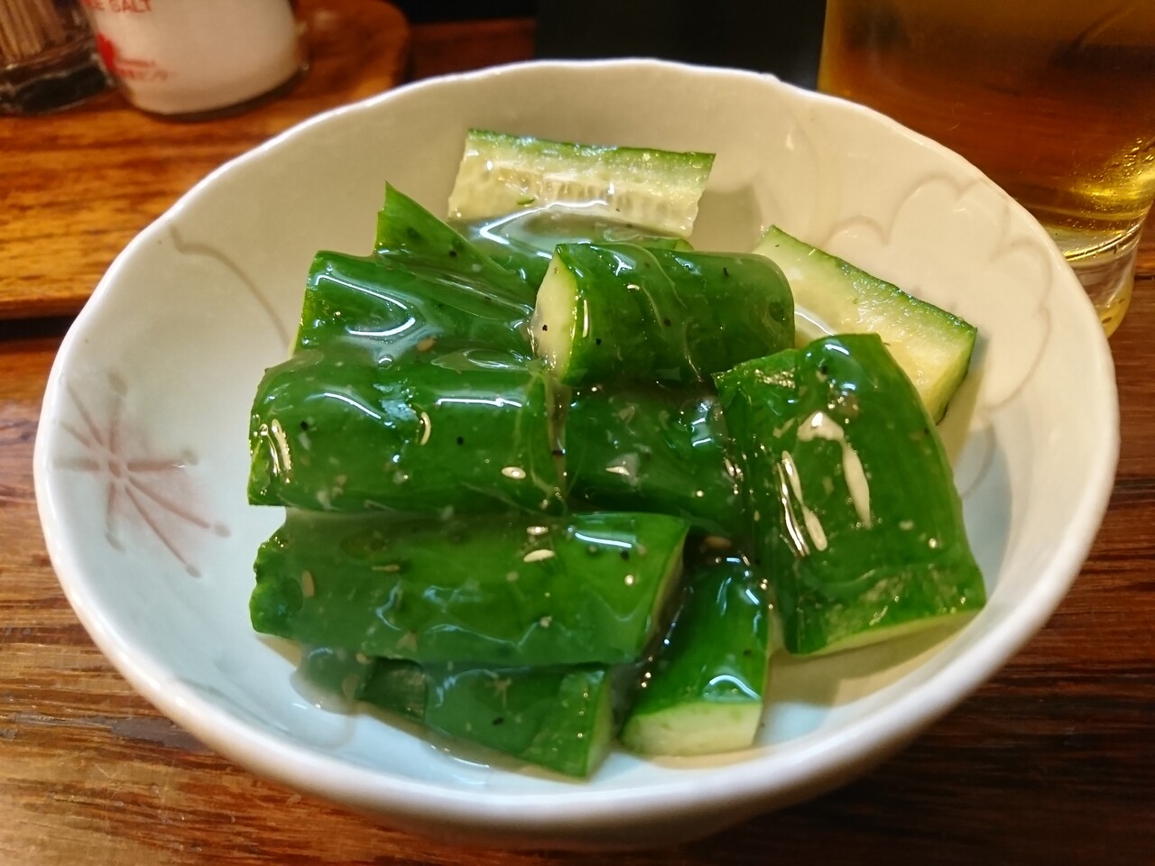 かくして、生ビールはあっという間に空になり。おかわりには芋焼酎をロックでいただいたよ。